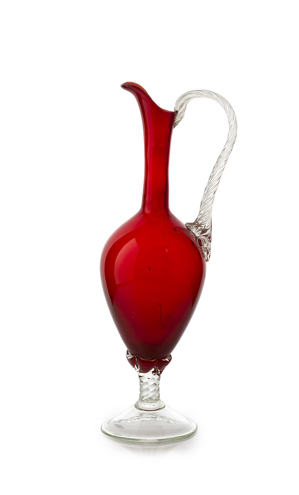 BROCCA DI MURANO, in vetro rosso e trasparente, h cm 40