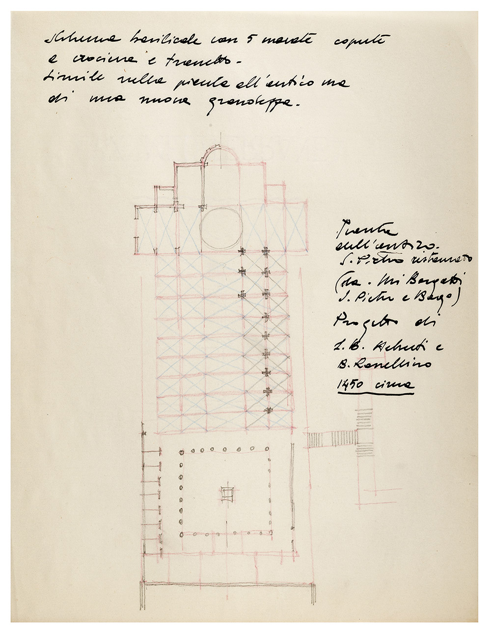PAOLO PORTOGHESI, Tesina per esame di Storia dell'Arte e Stili II, Luglio 1952, Cartellina contenete appunti e molti disegni , volumetrici
