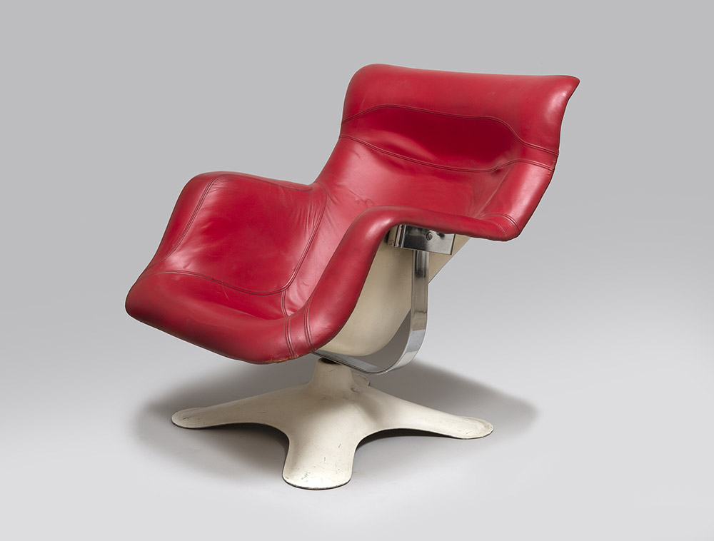 YRJO KUKKAPURO, Vyborg 1933, Poltrona, Modello Karuselli Per Artek 1964 in pelle rossa, con scocca e base in fibbra di vetro a smalto bianco