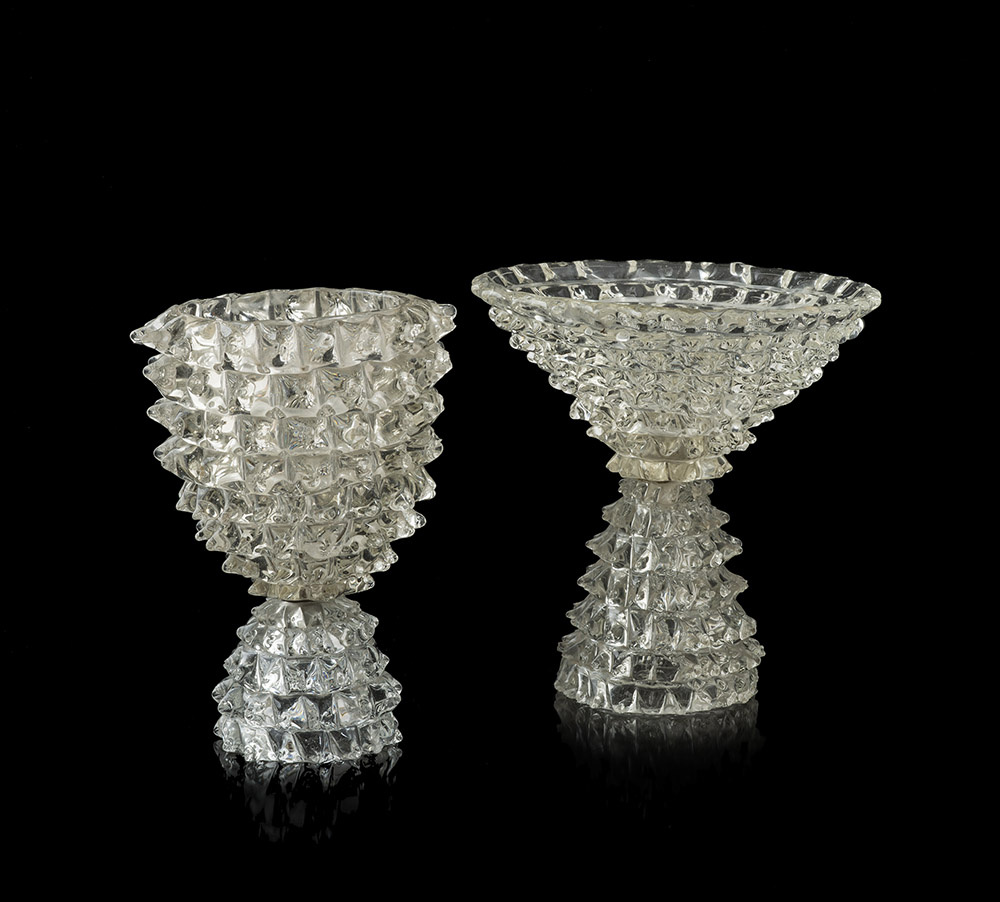 DUE LAMPADE BAROVIER & TOSO, in vetro rostrato a forma di coni rovesciati, Misure cm 22 x 15 e cm 22 x 20