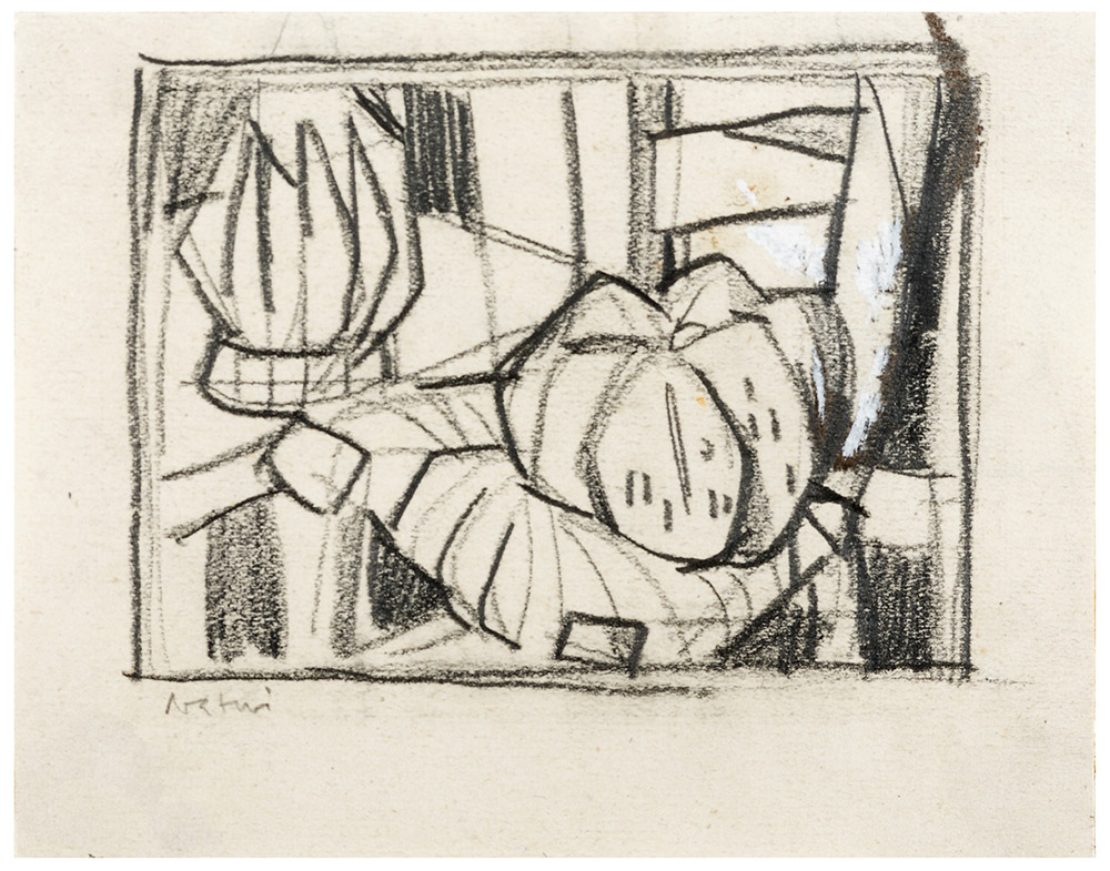 GUALTIERO NATIVI, Pistoia 1921 - Greve in Chianti 1999 , Natura morta 1947, Matita su carta cm 9, 5 x 12, Firma e data in basso a sinistra, Autentica su foto Archivio Nativi n.D474
