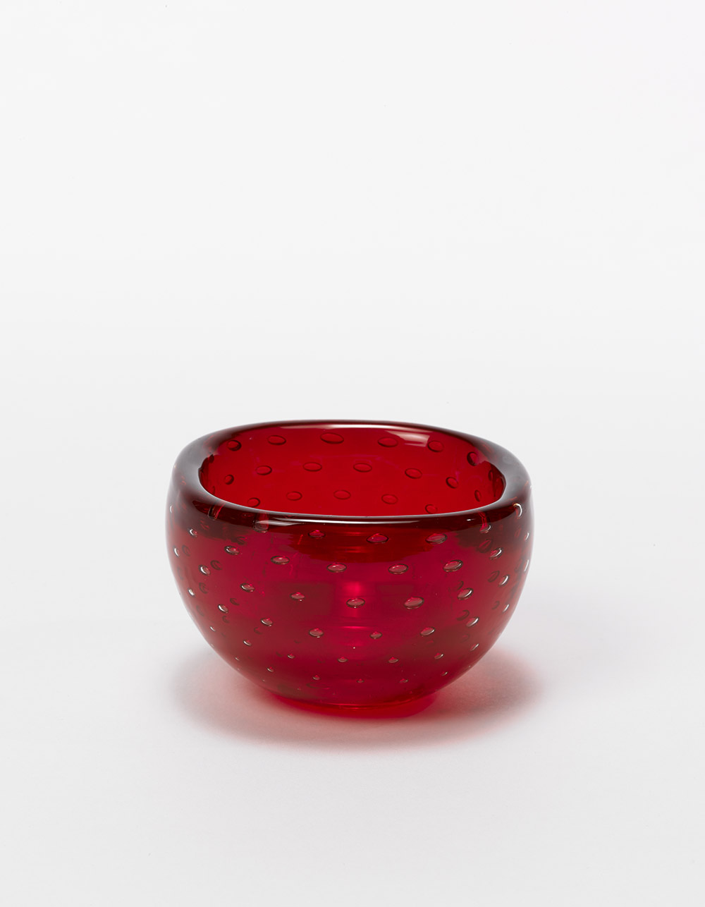 Venini, Murano Piccola ciotola in vetro "bulicante" rosso. Firmata all'acido "venini murano ITALIA" (cm 7,5x5,5) Little red glass bowl. Signed "venini murano ITALIA" (cm 7,5x5,5)
