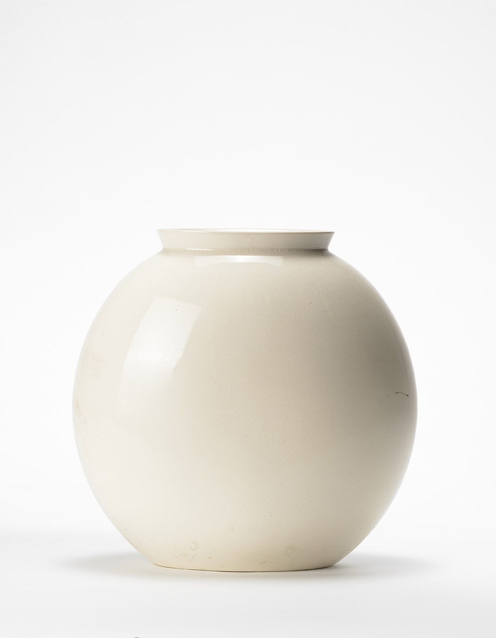 Guido Andlovitz ( 1900 - 1965) Vaso modello "1316". Società Ceramica Italiana - Lavenia, Laveno 1936 ca. Terraglia forte formata a colaggio, decorato a smalto bianco sotto vetrina. Marcato in verde sotto la base con il monogramma "Lavenia" e con i numerali "2-53" (h cm 30) Bibliografia: Il decoro in tavola. forme e colori di Guido Andloviz, a cura di A. Pansera e M. Chirico, Allemandi, Torino 2011, p. 100 Vase model "1216". Società Ceramica Italiana - Lavenia, Laveno, circa 1936. Molded casting earthenware. Marked under the base with the green monogram "Lavenia" and "2-53" numbers (h cm 30) Bibliography: Il decoro in tavola. forme e colori di Guido Andloviz, a cura di A. Pansera e M. Chirico, Allemandi, Torino 2011, p. 100