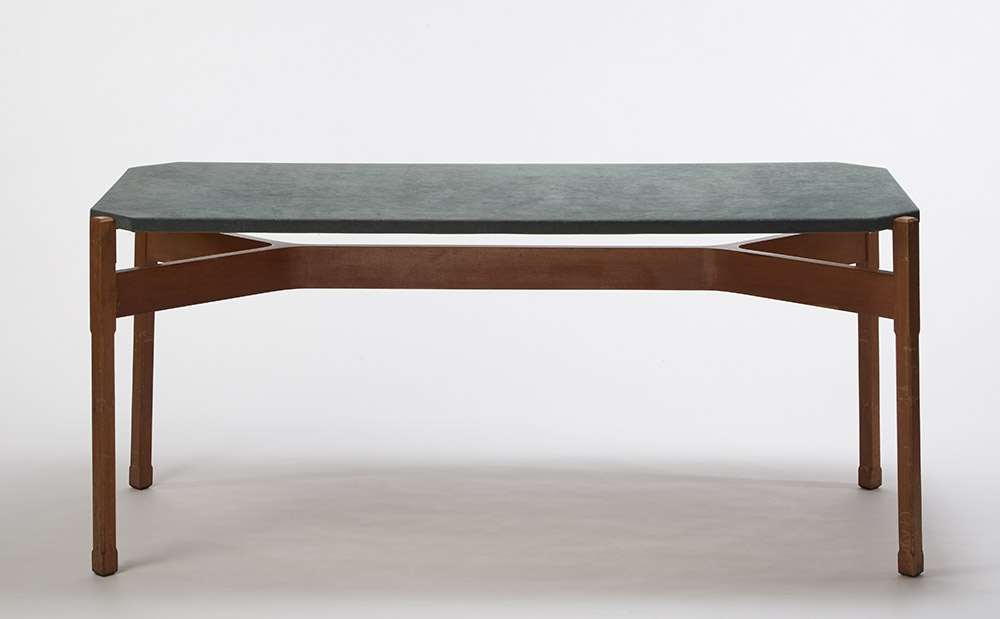 BBPR (Lodovico Barbiano di Belgiojoso, Enrico Peressutti, Ernesto Nathan Rogers) Tavolo-scrivania con piano impiallacciato in noce, rivestimento in tessuto verde, gambe in legno massello e traverse a X in mutistrato di noce curvato. Esecuzione Pierino Frigerio, Cantù 1962 ca. (cm 180x78x80,5) (lievi difetti) Provenienza: Appartamento Z.P., Milano, 1952 e 1962 ca. Table/desk. Veneered oak top, green fabric lining. Pierino Frigerio, Cantù, circa 1962 (cm 180x78x80,5) (minor defects) Provenance: Appartamento Z.P., Milano, 1952 e 1962 ca.