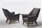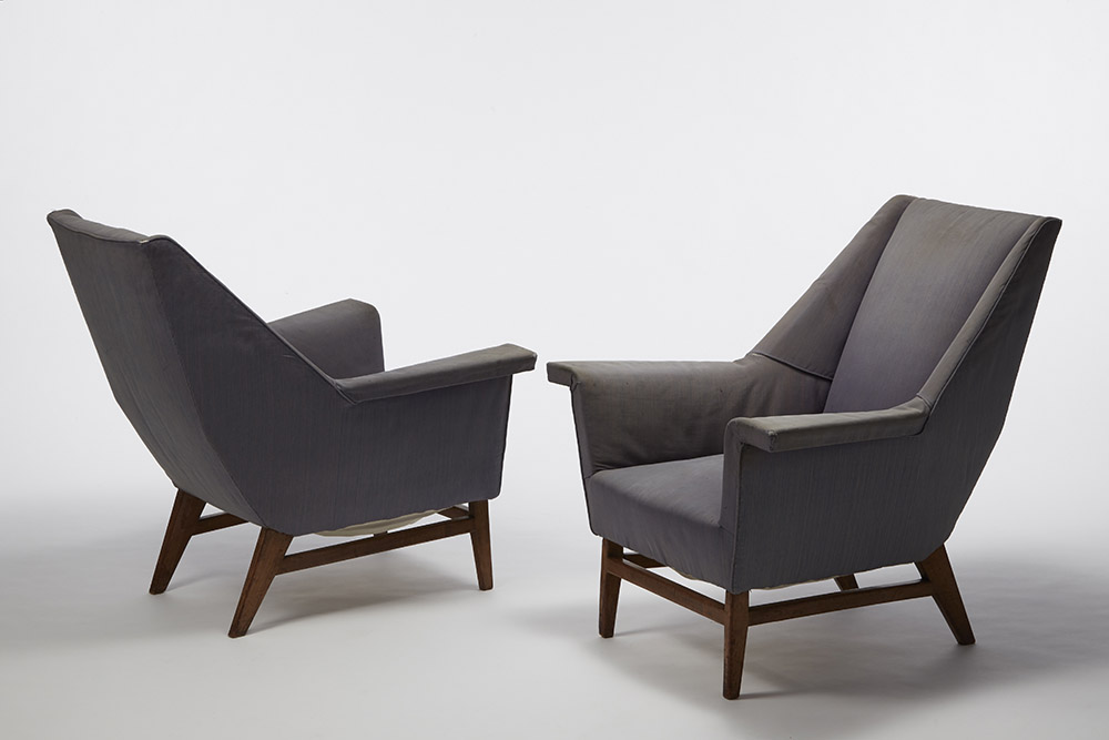 BBPR (Lodovico Barbiano di Belgiojoso, Enrico Peressutti, Ernesto Nathan Rogers) Coppia di poltrone imbottite con struttura in legno massello di noce e rivestimento in tessuto azzurro avio. Esecuzione Pierino Frigerio, Cantù 1952 ca. (cm 85x92x75) (difetti) Provenienza: Appartamento Z.P., Milano , 1952 e 1962 ca Pair of armchairs. Oak, blue fabric lining. Pierino Frigerio, Cantù, circa 1952 (cm 85x92x75) (defects) Provenance: Appartamento Z.P., Milano , 1952 e 1962 ca