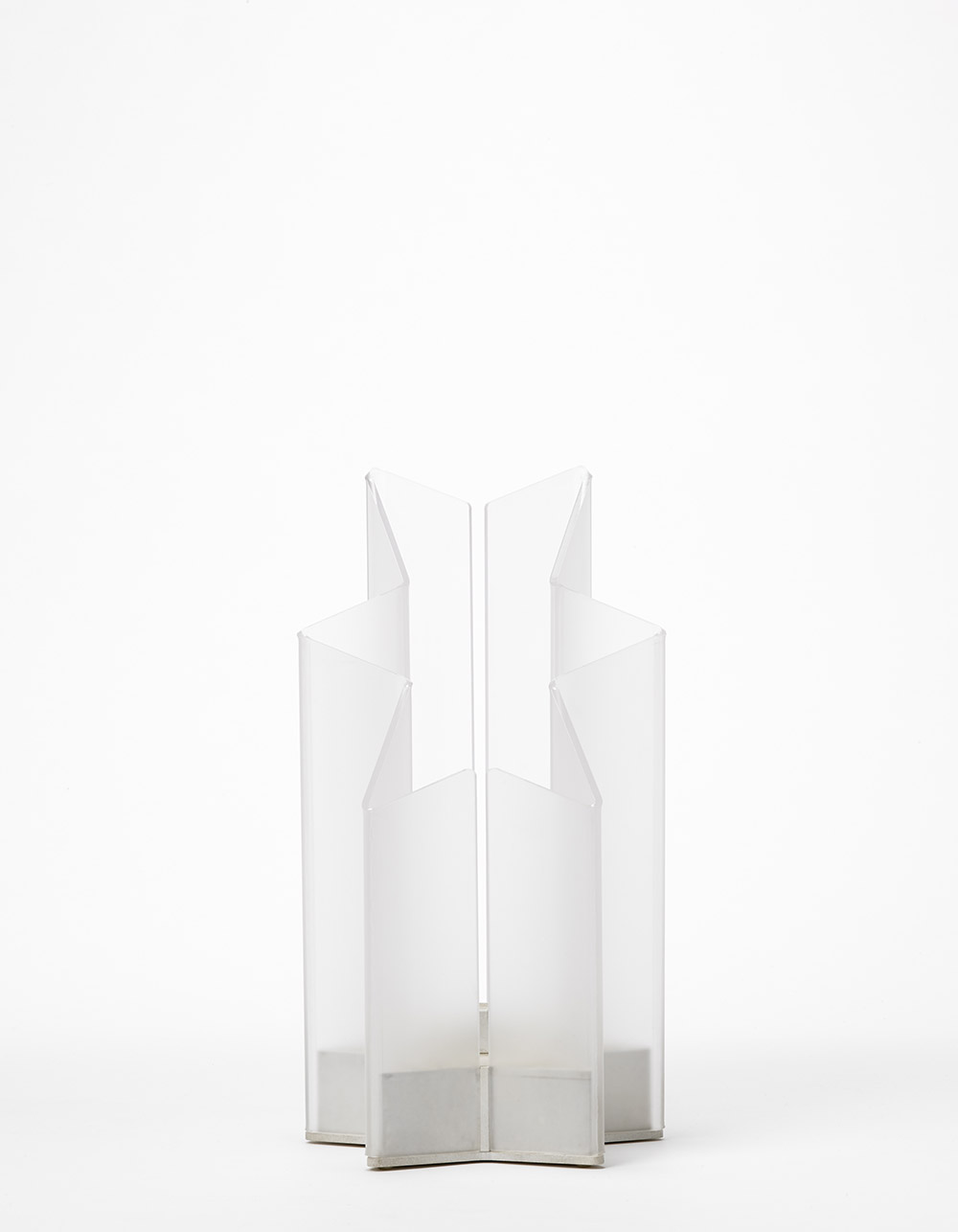Carla Venosta (1926) Lampada da appoggio modello "Libera geometria di una stella nascente" 1995. Metacrilato bianco e trasparente opalescente (h cm 41,5) (lievi difetti) Esposizioni: mostra "Genius Loci", Verona 1995 Bibliografia: P. Preti e C. Venosta, Architettonicamente, s.e., Milano 2012, pp. 96-101 Floor lamp model "Libera geometria di una stella nascente", 1995. White methacrylate. (h cm 41,5) (minor defects) Exhibitions: mostra "Genius Loci", Verona 1995 Bibliography: P. Preti e C. Venosta, Architettonicamente, s.e., Milano 2012, pp. 96-101