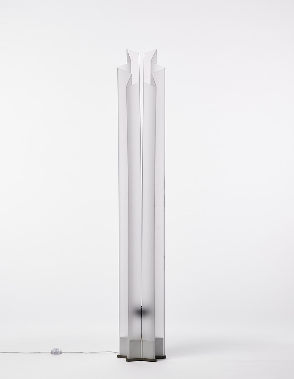 Carla Venosta (1926) Lampada da terra modello "Libera geometria di una stella nascente" 1995. Metacrilato bianco e trasparente opalescente (h cm 171) (difetti) Esposizioni: mostra "Genius Loci", Verona 1995 Bibliografia: P. Preti e C. Venosta, Architettonicamente, s.e., Milano 2012, pp. 96-101 Floor lamp model "Libera geometria di una stella nascente", 1995. White methacrylate. (h cm 171) (defects) Exhibitions: mostra "Genius Loci", Verona 1995 Bibliography P. Preti e C. Venosta, Architettonicamente, s.e., Milano 2012, pp. 96-101