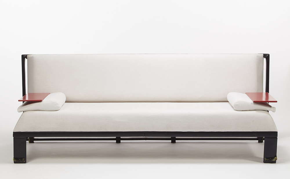 Carla Venosta (1926) Divano modello "Korè". Produzione Busnelli, Misinto 1985. Metallo verniciato, poliuretano espanso e tessuto elastico. (cm 220x80x81) (difetti e mancanze) Bibliografia: P. Preti e C. Venosta, Architettonicamente, s.e., Milano 2012; P. Preti e C. Venosta, Carla Venosta. 30 progetti di disegno industriale italiano, Electa, Milano 2007, pp. 31, 146-149 Sofa, model "Korè". Produced by Busnelli, Misinto 1985. Lacquered metal, polyurethane, fabric (cm 220x80x81) (defects and losses) Bibliography: P. Preti e C. Venosta, Architettonicamente, s.e., Milano 2012, p. ; P. Preti e C. Venosta, Carla Venosta. 30 progetti di disegno industriale italiano, Electa, Milano 2007, pp. 31, 146-149