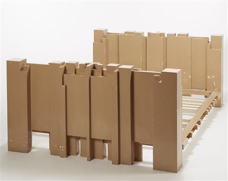 Carla Venosta (1926) Letto modello "Park 19". Produzione Bernini, Cantù, 1972. Legno laccato color cipria, in origine laccato bianco (h cm 90, l cm 221) (difetti) Bibliografia: P. Preti e C. Venosta, Architettonicamente, s.e., Milano 2012, p. 3 C. Fregnac, Decoration. Tradition et renouveau, Hachette, Paris, 1973, p. 142 Bed, model "Park 19". Produced by Bernini, Cantù, 1972. White lacquered wood. (h cm 90, l cm 221) Bibliography: P. Preti e C. Venosta, Architettonicamente, s.e., Milano 2012, p. 3 C. Fregnac, Decoration. Tradition et renouveau, Hachette, Paris, 1973, p. 142