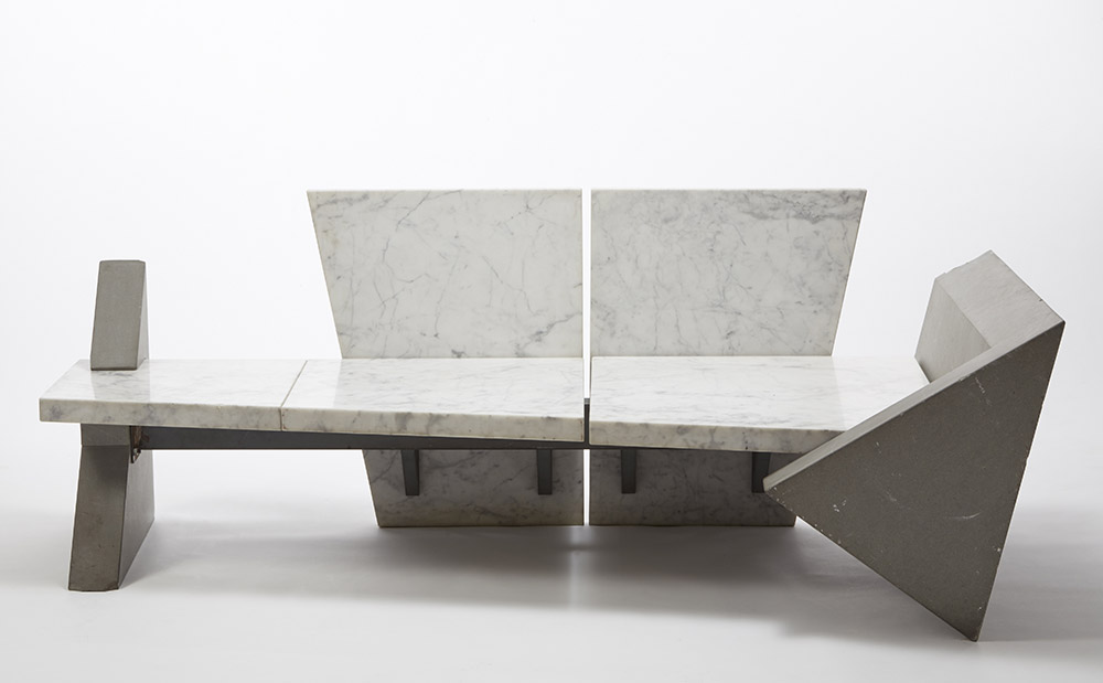 Carla Venosta (1926) Panca da interni ed esterni modello "84", serie "Citazioni domestiche". Esecuzione Ultima Edizione, Carrara, disegno 1984, esecuzione 1989. Marmo e pietra serena ( cm 223x59) (difetti) Biliografia: P. Preti e C. Venosta, Architettonicamente, s.e., Milano 2012, pp. 88-89; P. Preti e C. Venosta, Carla Venosta. 30 progetti di disegno industriale italiano, Electa, Milano 2007, p. 140 Bench, model "84", series "Citazioni domestiche". Ultima Edizione, Carrara, disegno 1984, produced 1989. Marble and stone. ( cm 223x59) (defects) Bibliography: P. Preti e C. Venosta, Architettonicamente, s.e., Milano 2012, pp. 88-89; P. Preti e C. Venosta, Carla Venosta. 30 progetti di disegno industriale italiano, Electa, Milano 2007, p. 140