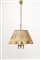 Gino Sarfatti (attribuito) Lampadario a tre fiamme con struttura in ottone e portacandele in vetro zigrinato, paralume in tessuto. Probabile produzione Arteluce, Milano anni 40 (h cm 130, d cm 60) (lievi difetti e mancanze) Gino Sarfatti (attributed) Three arm ceiling light. Brass, glass, fabric shade. Probable manufacture by Arteluce, Milan 1940s (h cm 130, d cm 60) (minor defects and losses)