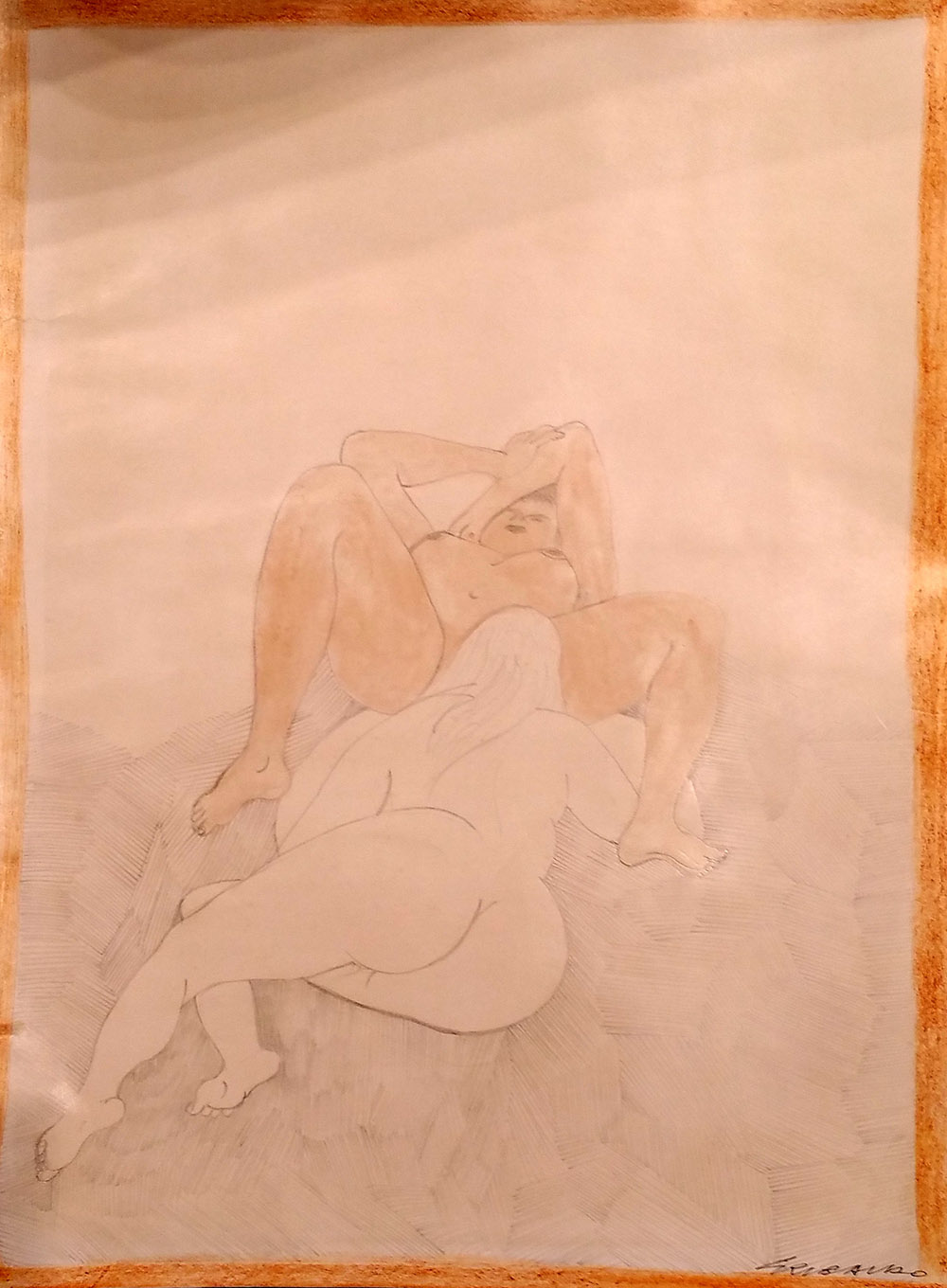 Ezio Gribaudo "s.tit." china e acquerello su carta - dim. foglio cm 32x24 - Firma autografa dell'artista