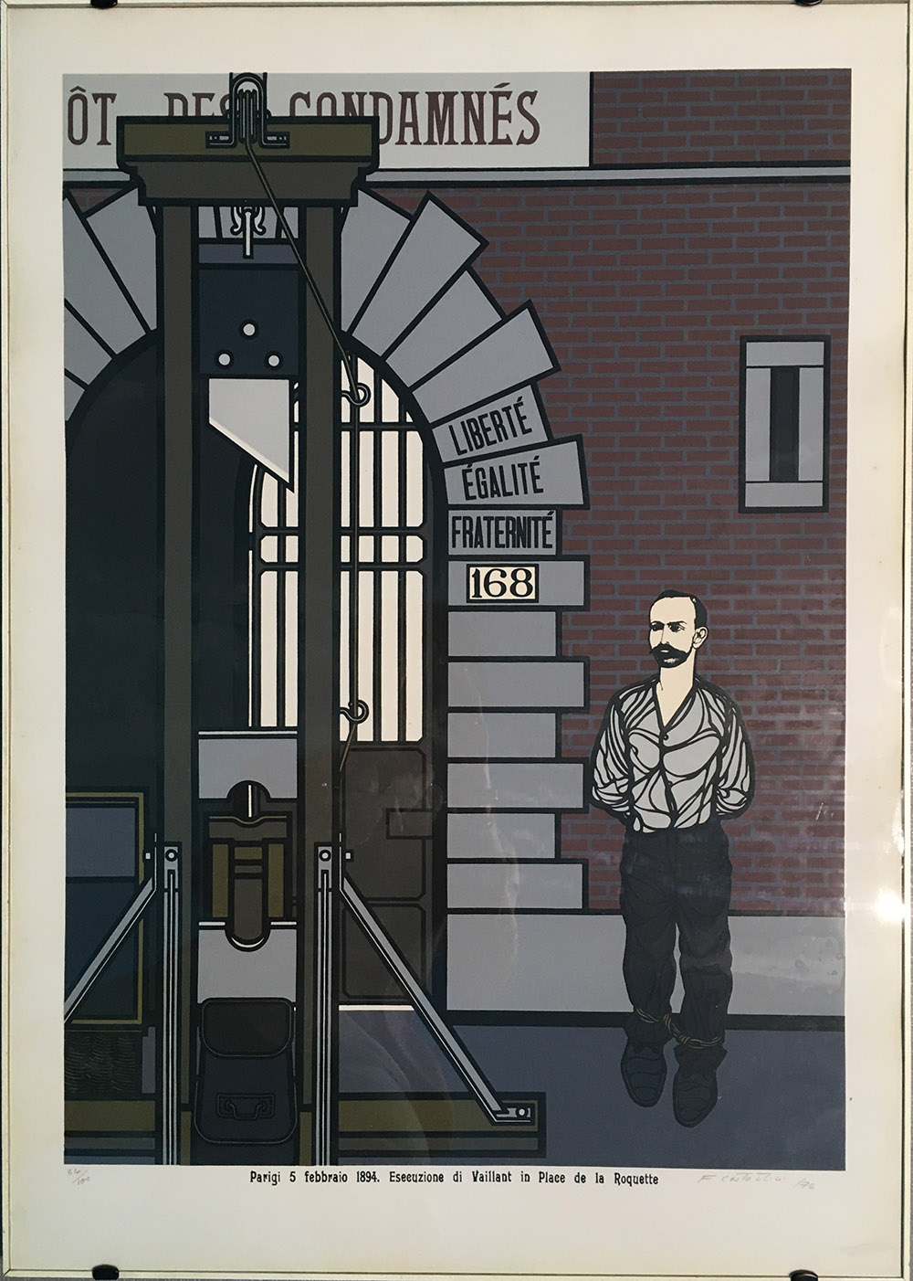 Flavio Costantini "Esecuzione di Vaillant in Place de la Roquette" - Stampa su carta - cm 70x50 - es. 34/100 -Firma autografa dell'artista in basso a dx