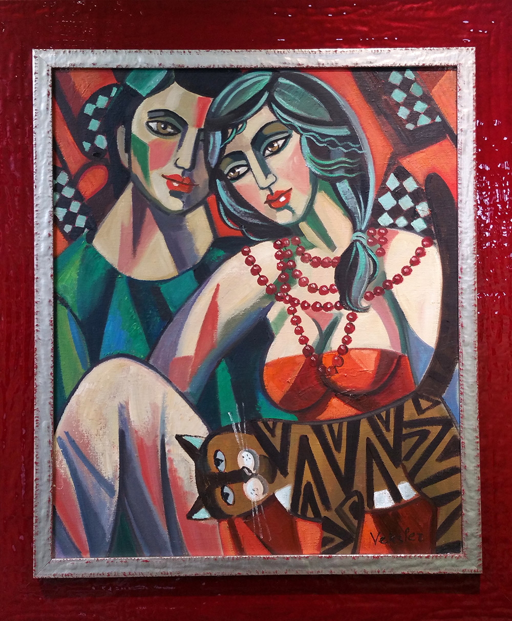 Samuel Veksler "Amanti" - Olio su tela- cm55 x46 - Firma in basso a dx