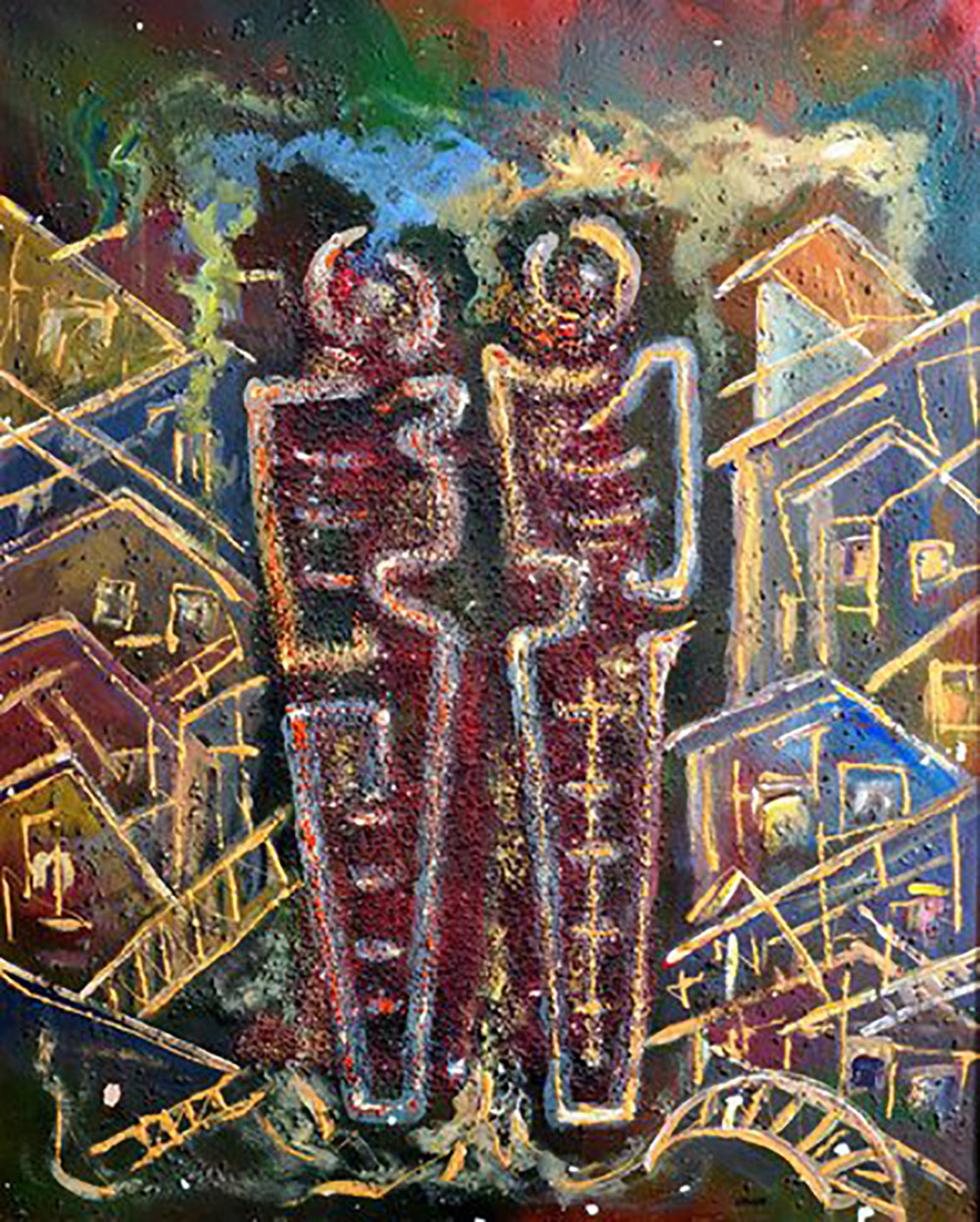Pippo Oriani "Presenze umane in città distrutta" 1970 - Olio su tela - cm...