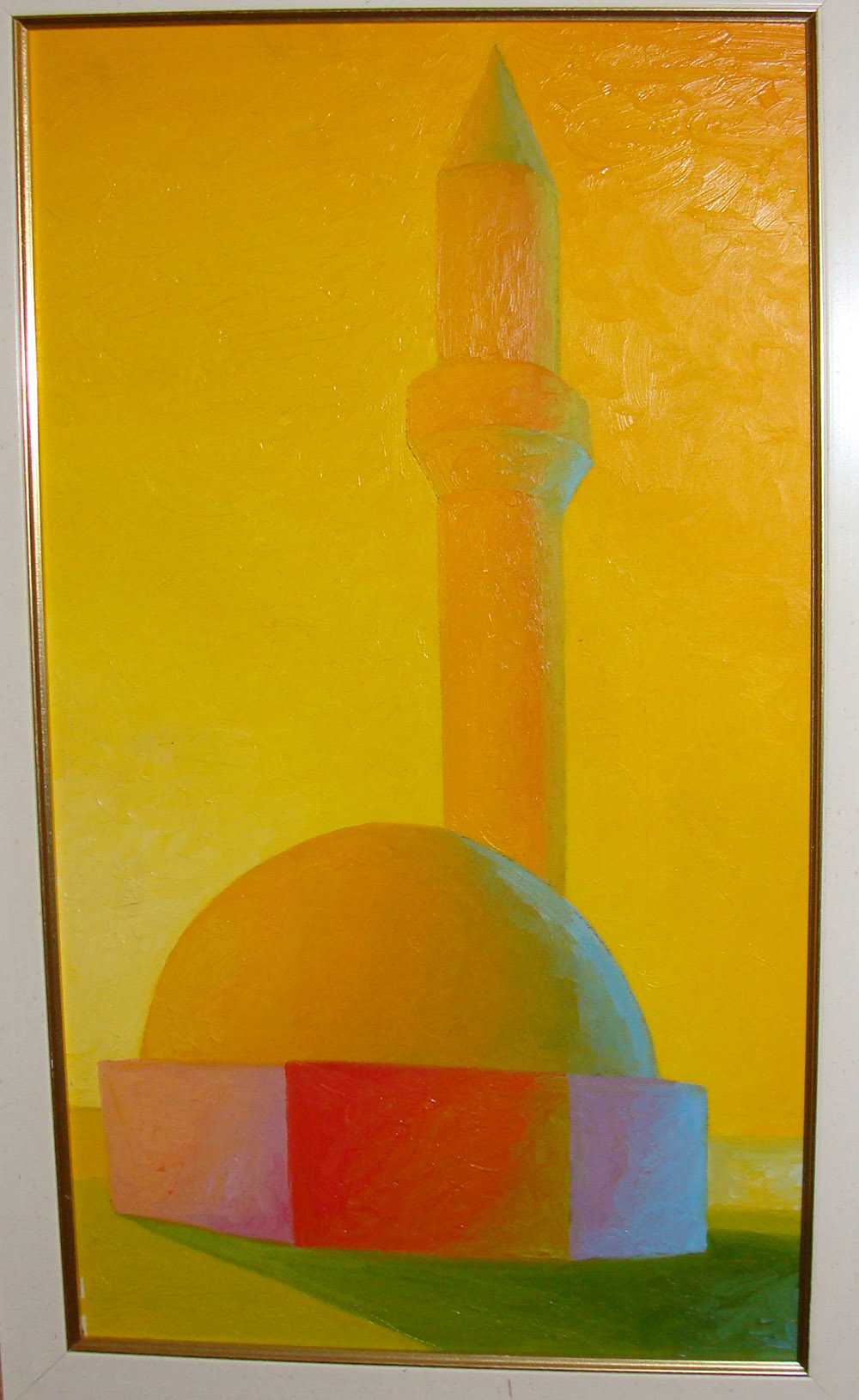 Salvo "Minareto" 1990- Olio su tela - cm 60x34 - Firma in basso a dx -Autentica dell'artista su foto