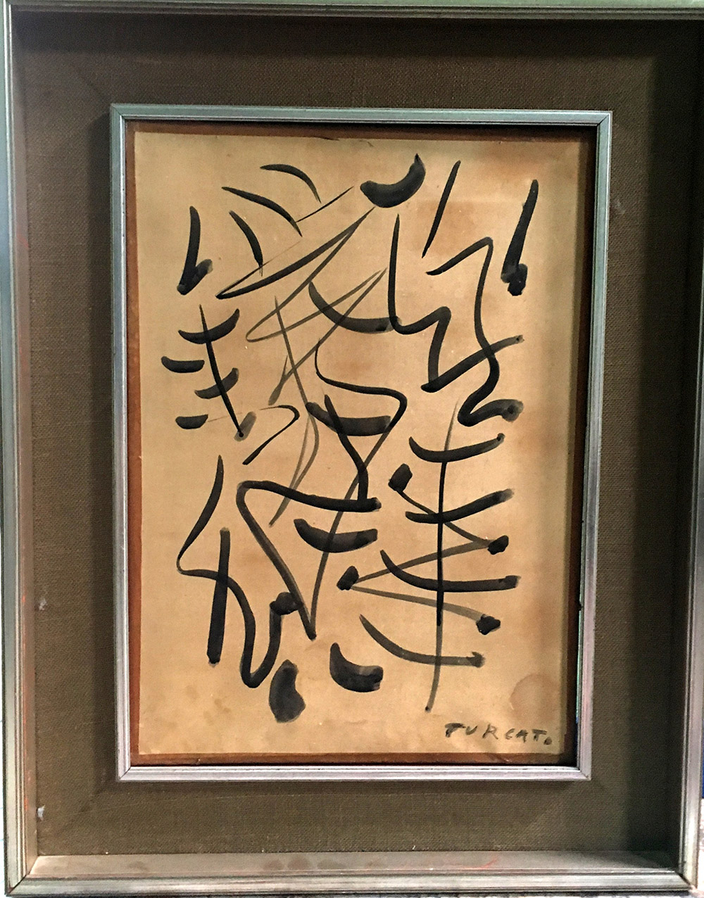Giulio Turcato "s.tit." -China acquerellata su carta - cm 50x35 - Firma in basso a dx - Opera incorniciata
