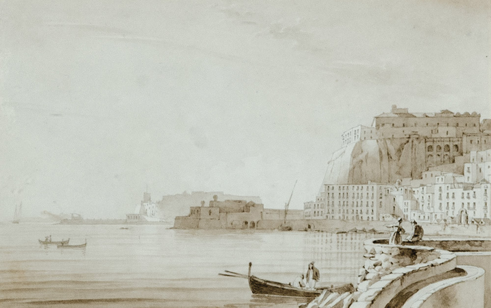 ALEKSANDR NIKOLAEVIC MORDVINOV San Pietroburgo 1800 - Odessa 1858 Veduta di Santa Lucia a Napoli dal porto Matita e acquerello bruno su carta, 15,1 x 23,3 cm Firma in basso a destra: Mordvinoff Pubblicazioni La pittura russa nell’età Romantica, Bologna 1990, p. 170 ALEKSANDR NIKOLAEVIC MORDVINOV Saint Petersburg 1800 - Odessa 1858 St. Lucia view from the harbour in Naples Pencil and brown watercolor on paper, 15,1 x 23,3 cm Signed lower right: Mordvinoff Pubblished La pittura russa nell’età Romantica, Bologna 1990, p. 170