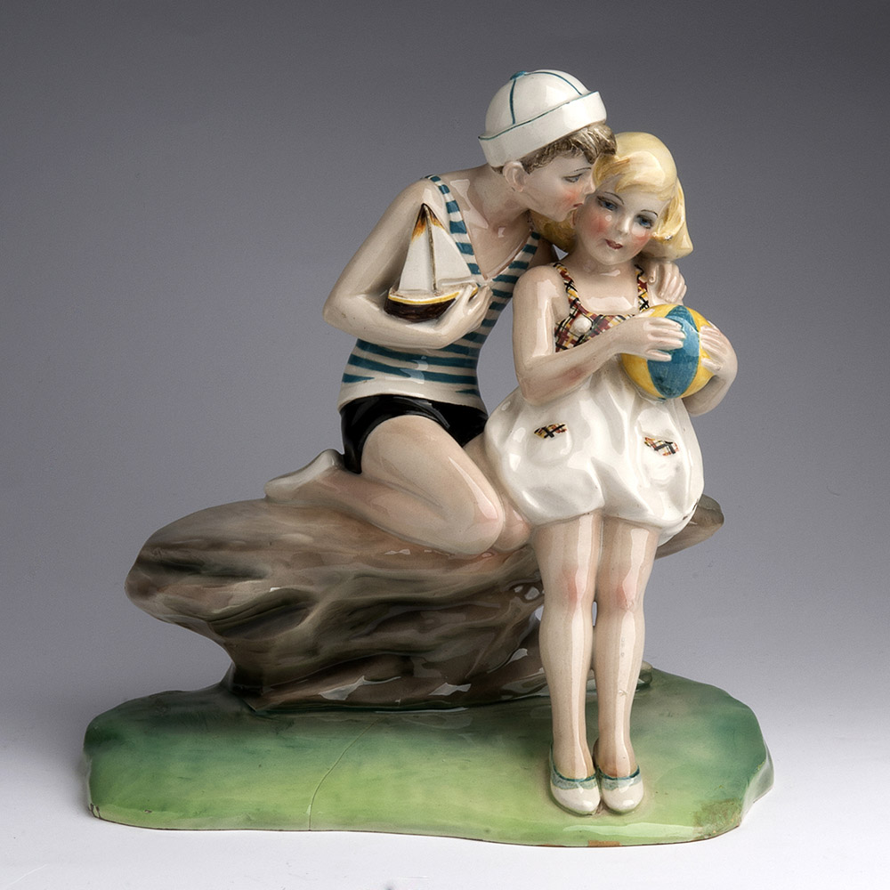 ARTURO PANNUNZIO Campobasso 1891 - Milano 1953 Coppia di bambini, Anni ‘40 Scultura in ceramica policroma, 23 x 22 x 13 cm Iscritta al retro con firma: Arturo Panunzio, A Delfino Milano Inciso sotto la base: A Delfino Milano ARTURO PANNUNZIO Campobasso 1891 - Milan 1953 Children, ‘40s Painted ceramic, 23 x 22 x 13 cm Signed and inscribed on the back: Arturo Panunzio, A Delfino Milano Inscribed under the base: A Delfino Milano