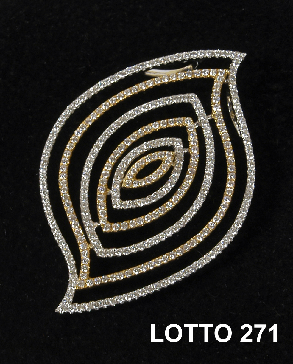 CIONDOLO A FOGLIA IN ORO E BRILLANTINI GRAMMI TOT. 3,45 ORO 750 % GRAMMI 3,10 BRILLANTINI CARATI 1,80 CA.