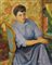NINO BERTOLETTI Roma 1889 - 1971 Donna in poltrona, Anni ‘50 Olio su tela, 81 x 65,5 cm Firma in basso a sinistra: Bertoletti NINO BERTOLETTI Rome 1889 - 1971 Womanin armchair, 50’s Oil on canvas, 81 x 65,5 cm Signed lower left: Bertoletti