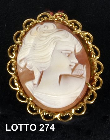 SPILLA – CIONDOLO CON CAMEO E ORO GRAMMI TOT. 5,95 ORO 750 % GRAMMI 3,50 CA. CAMEO IN CONCHIGLIA