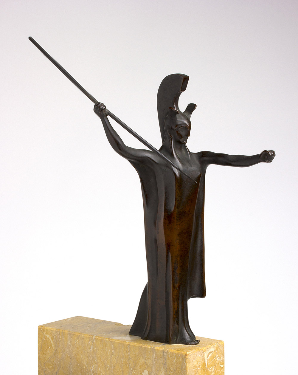 DUILIO CAMBELLOTTI Roma 1876-1960 Minerva, 1907 Scultura in bronzo, h 22 cm; h 49 cm (compresa la base) Esposizioni Roma 1909 (cat. sala G, n. 159 bis); Lipsia 1914 (cat. p. 228); Milano 1919; Latina 1984 (cat. n. 18); Matera 1991 (cat. p. 49 ripr. 29) Bibliografia Agostinoni, 1908 (p. 179); “La Casa”, 1909 (pp. 68-69); Turati, 1914 (p. 237); Sapori, 1919 (p. 85); “L’Ambiente Moderno”, 1913 (tav. 84); Calzini, 1919 (p. 156); Sapori, 1929; Bessone-Aurelj, 1947 (p. 114); Sapori, 1949 (p. 444); Damigella, 1969 (p. 132); Quesada, in cat. Latina 1984 (p. 90); Appella, Quesada, in cat. Matera 1991 (p. 49, n. 29); Cambellotti (1876 - 1960), Galleria Comunale d’Arte Moderna e Contemporanea, Roma 24 settembre 1999 - 23 gennaio 2000, Edizioni de Luca, p. 114, n. 110. DUILIO CAMBELLOTTI Rome 1876-1960 Minerva, 1907 Bronze sculpture, h 22 cm; h 49 cm (overall) Exhibited Rome 1909 (cat. sala G, n. 159 bis); Lipsia 1914 (cat. p. 228); Milan 1919; Latina 1984 (cat. n. 18); Matera 1991 (cat. p. 49 ripr. 29) Bibliography Agostinoni, 1908 (p. 179); “La Casa”, 1909 (pp. 68-69); Turati, 1914 (p. 237); Sapori, 1919 (p. 85); “L’Ambiente Moderno”, 1913 (tav. 84); Calzini, 1919 (p. 156); Sapori, 1929; Bessone-Aurelj, 1947 (p. 114); Sapori, 1949 (p. 444); Damigella, 1969 (p. 132); Quesada, in cat. Latina 1984 (p. 90); Appella, Quesada, in cat. Matera 1991 (p. 49, n. 29); Cambellotti (1876 - 1960), Galleria Comunale d’Arte Moderna e Contemporanea, Roma 24 settembre 1999 - 23 gennaio 2000, Edizioni de Luca, p. 114, n. 110.