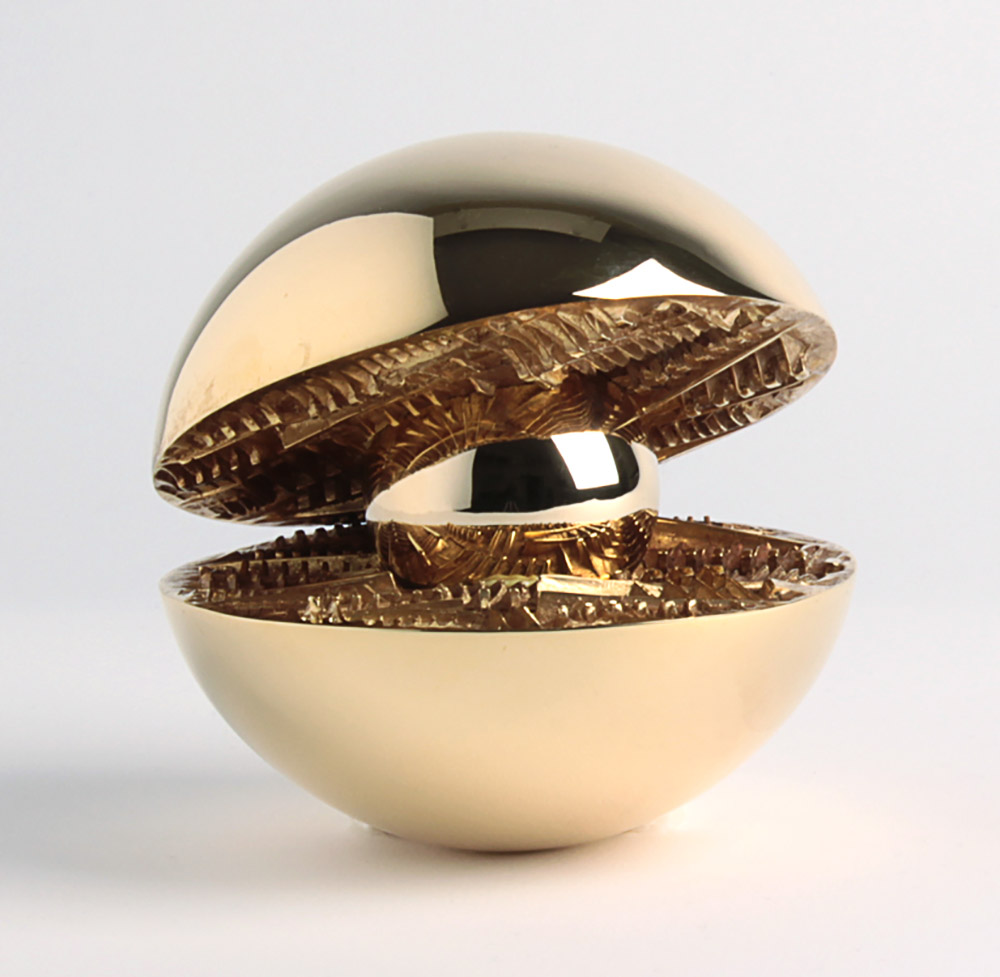ARNALDO POMODORO Morciano di Romagna 1926 Sfera, 1974 Scultura in ottone dorato, ex. 12/12, d 12 cm circa Firma incisa lungo il bordo: Arnaldo Pomodoro Firma e esemplare incisi sulla scatola: Arnaldo Pomodoro 12/12 Archiviato presso l’Archivio Pomodoro: M/74/12 Ne esistono 6 esemplari in argento (da 1/12 a 6/12) e 6 esemplari in ottone (da 7/12 a 12/12) ARNALDO POMODORO Morciano di Romagna 1926 Sphere, 1974 Brass sculpture with gold patina, ex. 12/12, d 12 cm ca. Engraved signature along the edge: Arnaldo Pomodoro Engraved signature and number on the box: Arnaldo Pomodoro 12/12 Pomodoro Archive: M/74/12 6 silver examples (1/12 - 6/12) and 6 brass examples (7/12 - 12/12)