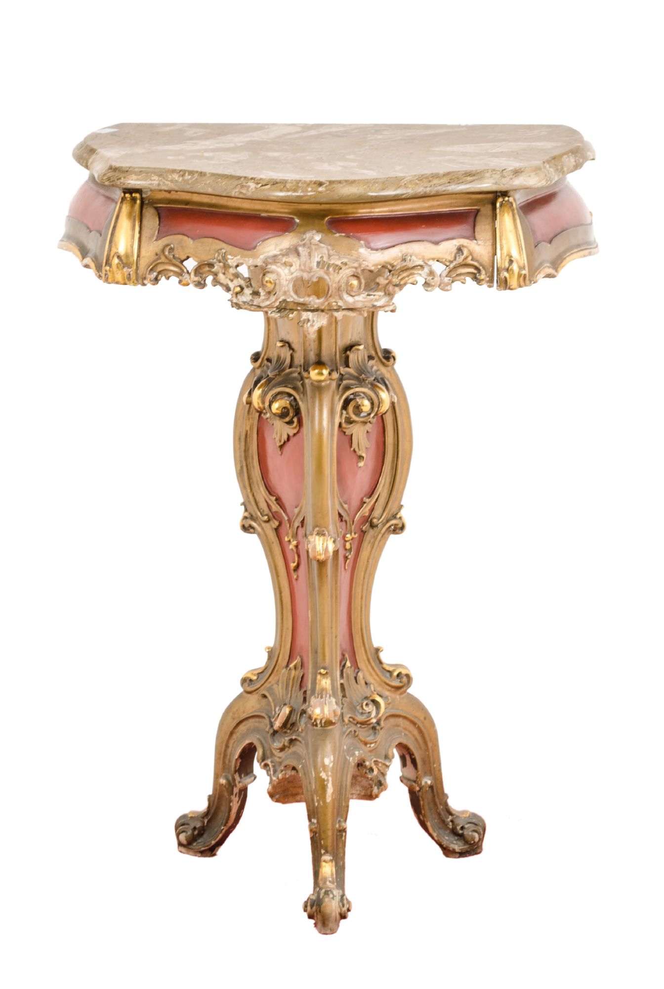 CONSOLLINA sagomata in legno laccato e dorato, cassetto frontale e piano in marmo. Sicilia meta' '900 Misure: cm 51 x 36 x h 75