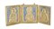 ICONA da viaggio in bronzo dorato con inserti in smalto a foggia di trittico...