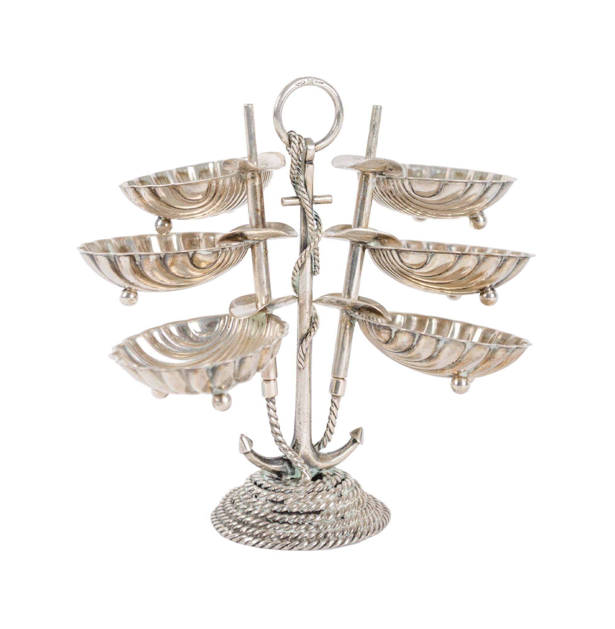 POSACENERE a sei vaschette in argento (g. 237). Italia XX secolo Misure: h cm 13