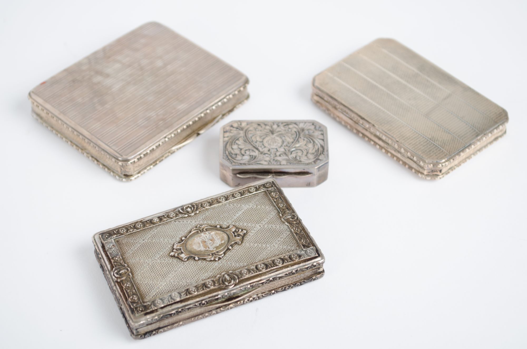 LOTTO composto da 3 PORTASIGARETTE e da PORTAPILLOLE in argento (g. 240). XX secolo Misure: varie