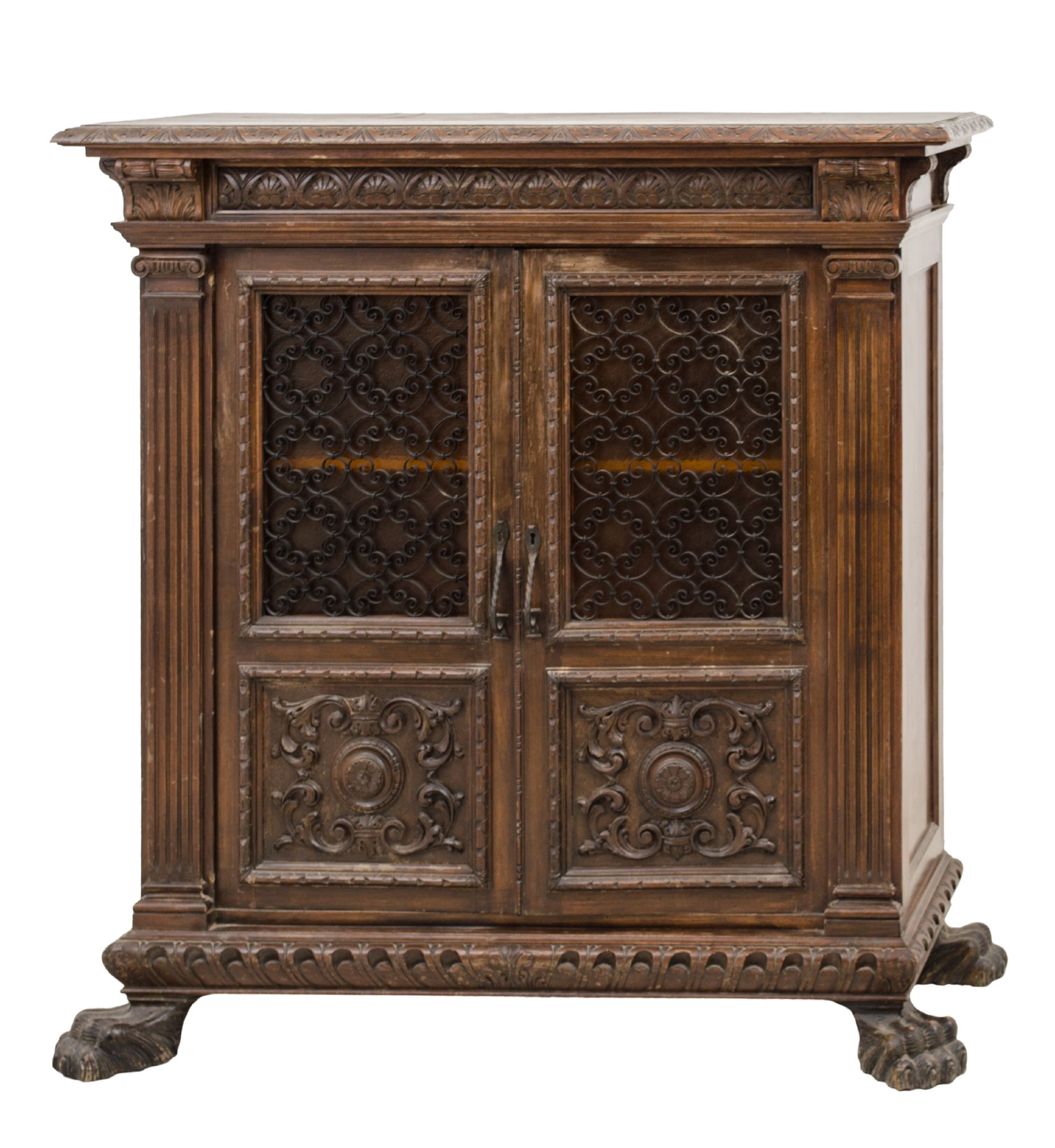 CARTIERA stile rinascimentale in noce. Sicilia meta' '900 Misure: cm 116 x 46 x h 118