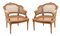 COPPIA POLTRONE in noce con sedute e spalliere in finocchino. XX secolo Misure: cm 61 x 70 x h 71