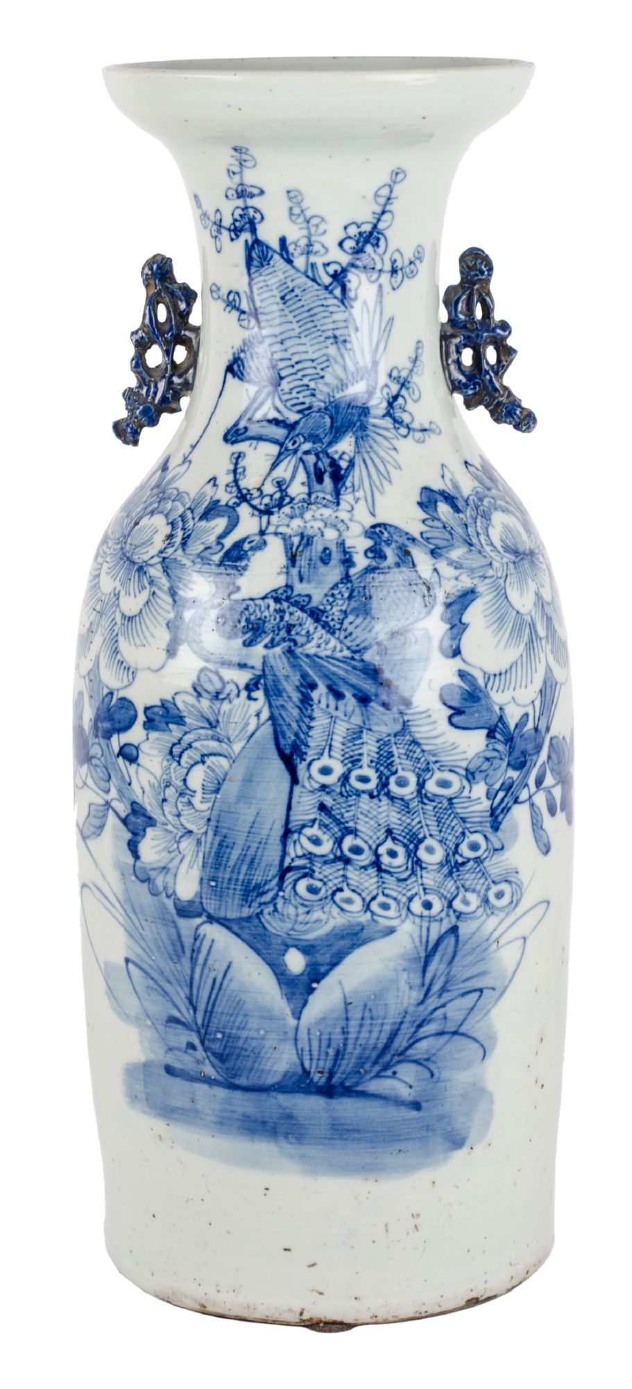 VASO in porcellana bianca con decori nei toni del blu a motivo naturalistico. Cina XIX secolo Misure: h cm 56,5