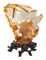 GRUPPO in occhio di tigre raffigurante "ramo fiorato con volatili", base in legno. Cina XX secolo Misure: h cm 14