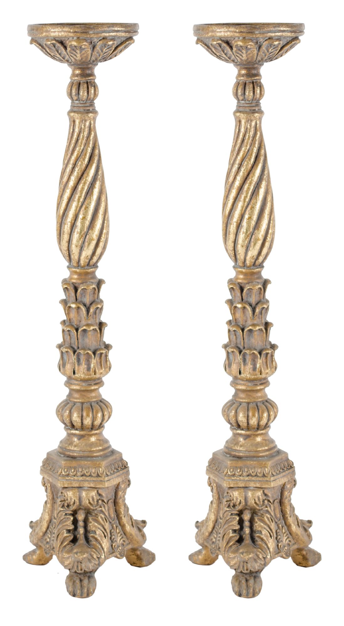 DUE TORCIERI in legno dorato. Italia XX secolo Misure: h cm 61