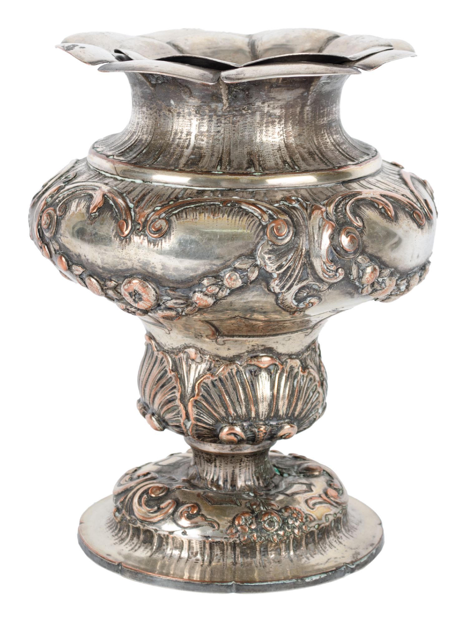VASO portafiori in metallo argentato e sbalzato a mano. Italia XIX secolo Misure: h cm 27
