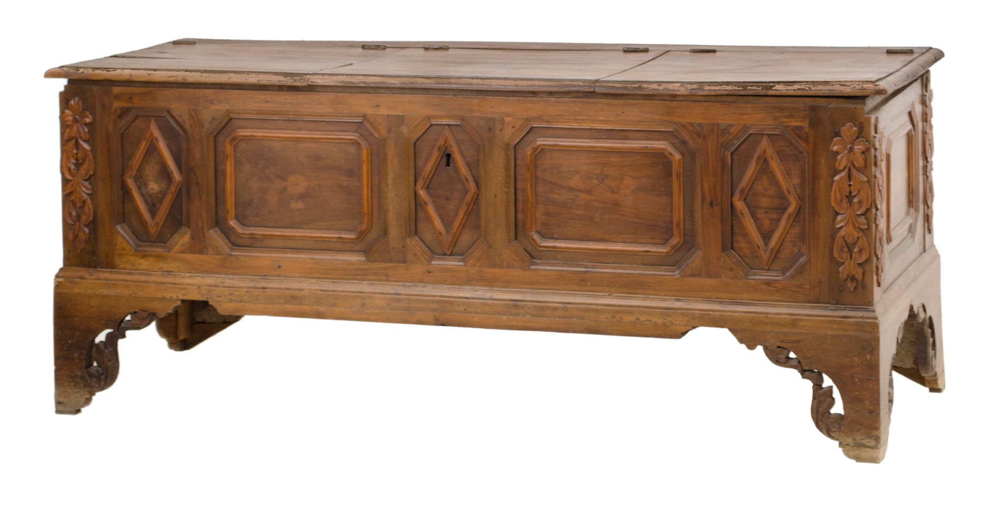 CASSAPANCA in noce con intagli sul fronte. Sicilia II meta' '800 Misure: cm...