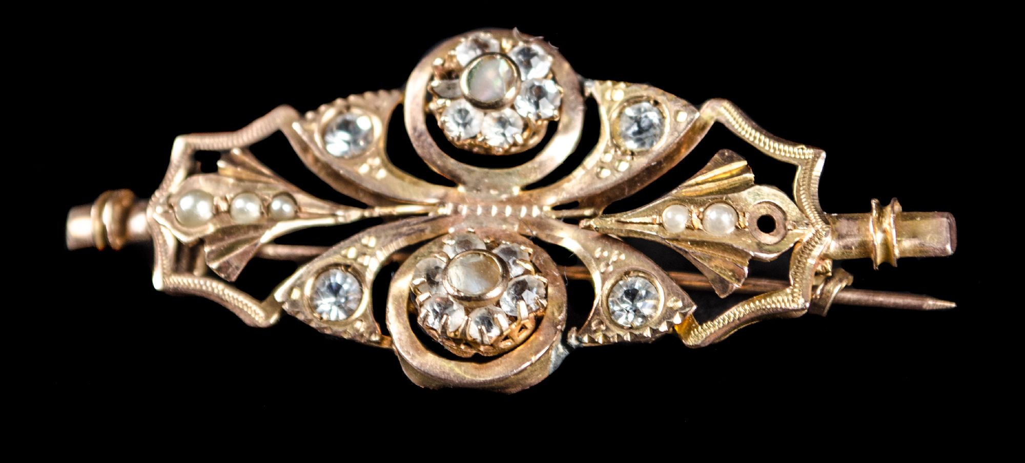 Lotto 349 | SPILLA in oro basso titolo con strass (lieve difetto).
