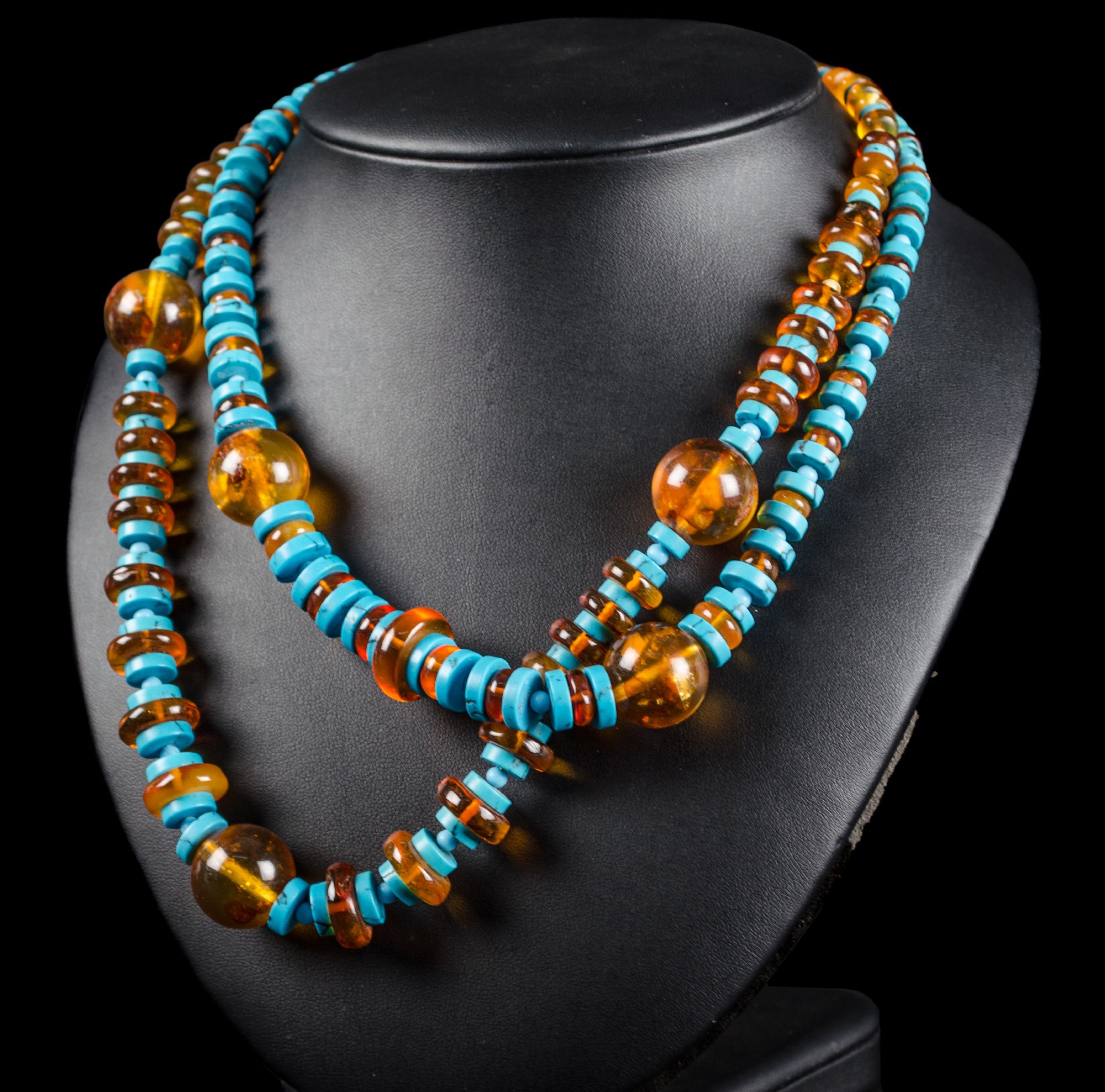 Lotto 350 | COLLANA con ambra intervallata da turchesi.