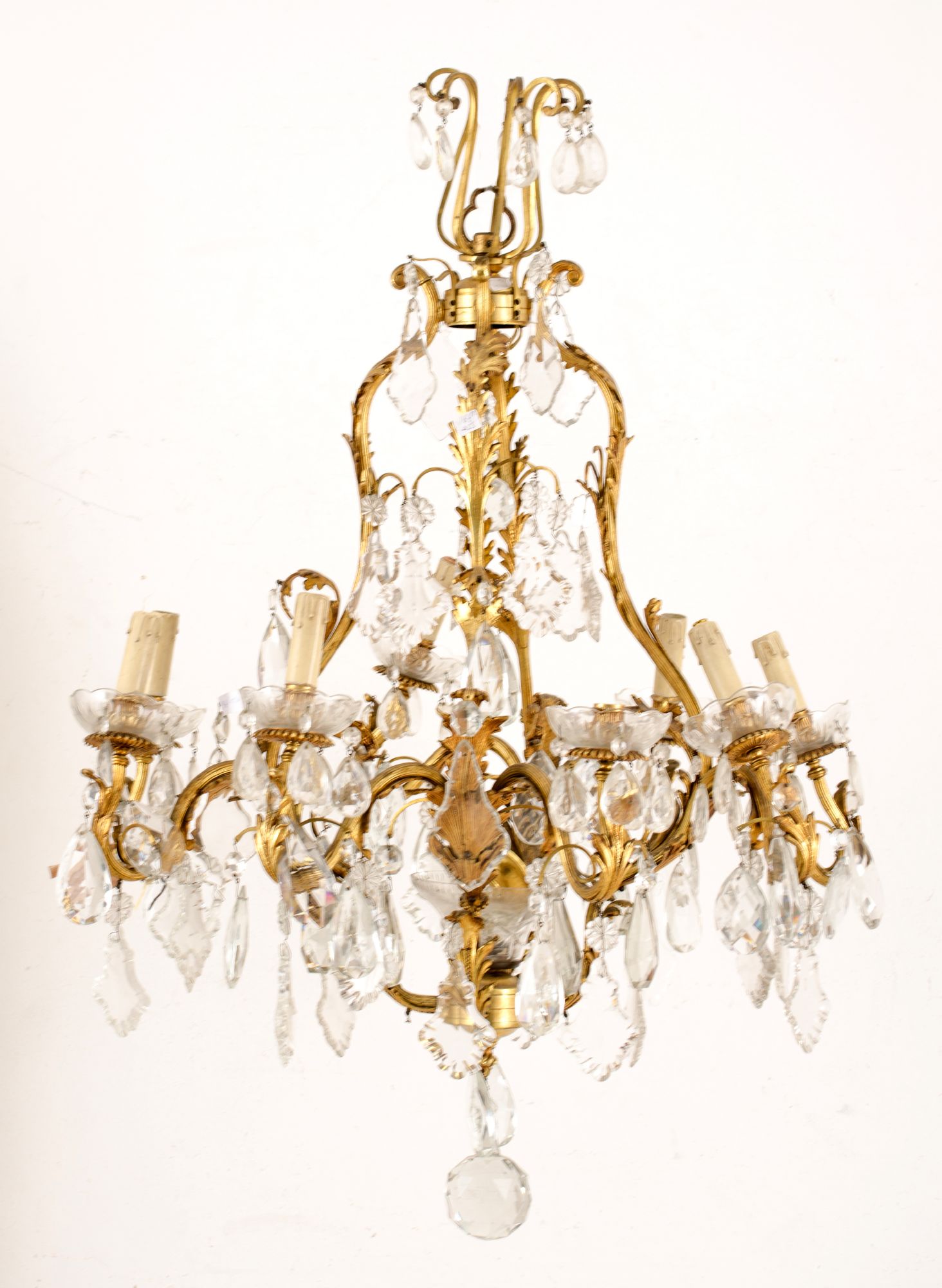 LAMPADARIO a nove luci in bronzo dorato. Italia XX secolo Misure: h cm 100