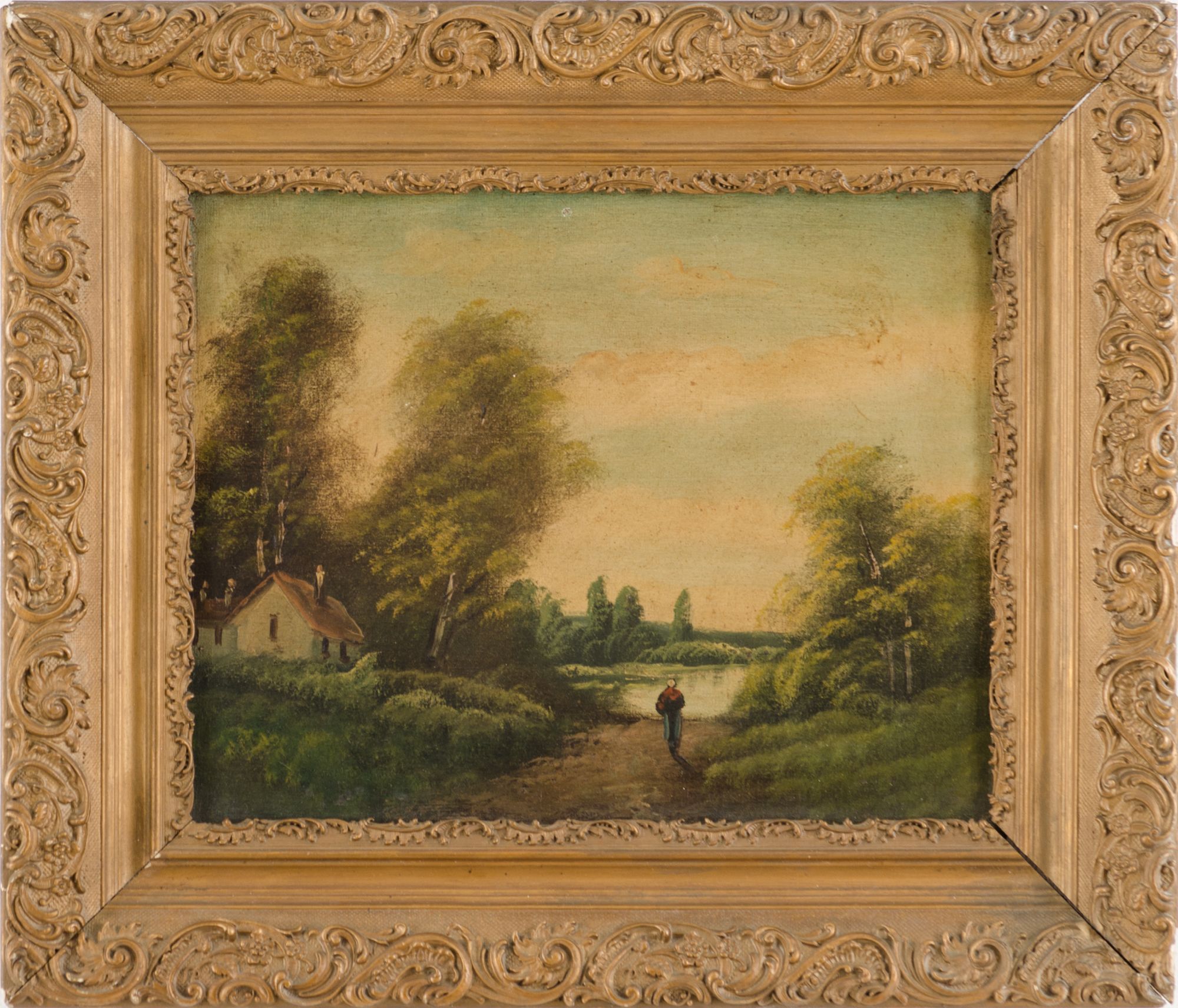 COPPIA OLI su tela "paesaggi" entro cornice coeva. Francia fine '800 Misure: cm 33 x 41