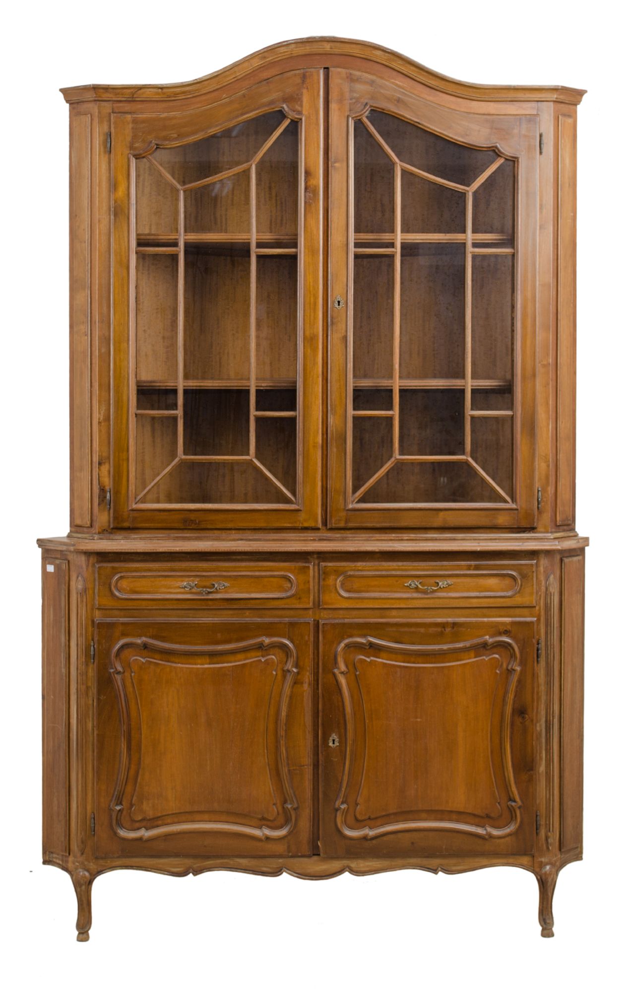 ANGOLIERA doppio corpo in noce con due ante superiori, due cassetti centrali e due ante inferiori. Italia XX secolo Misure: cm 149 x 84 x h 236