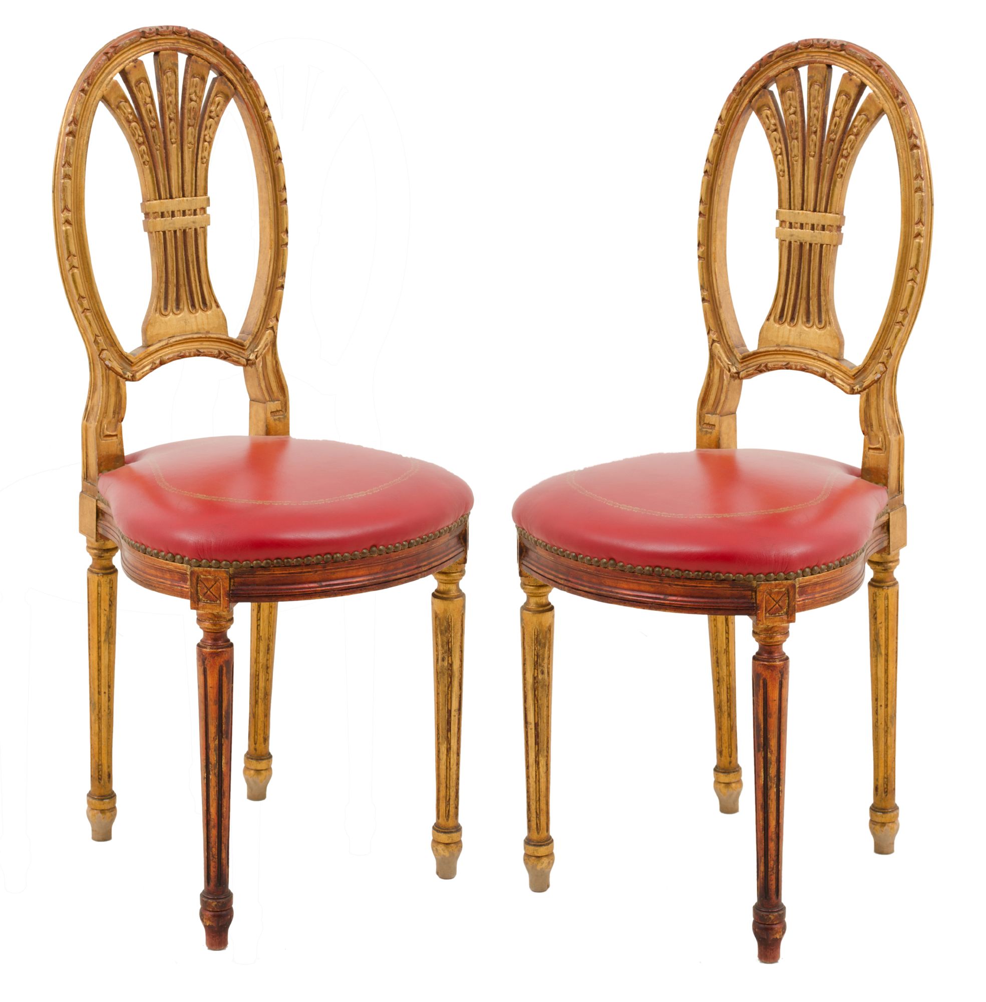 DUE SEDIE stile Luigi XVI in legno dorato. Italia XX secolo Misure: h cm 90