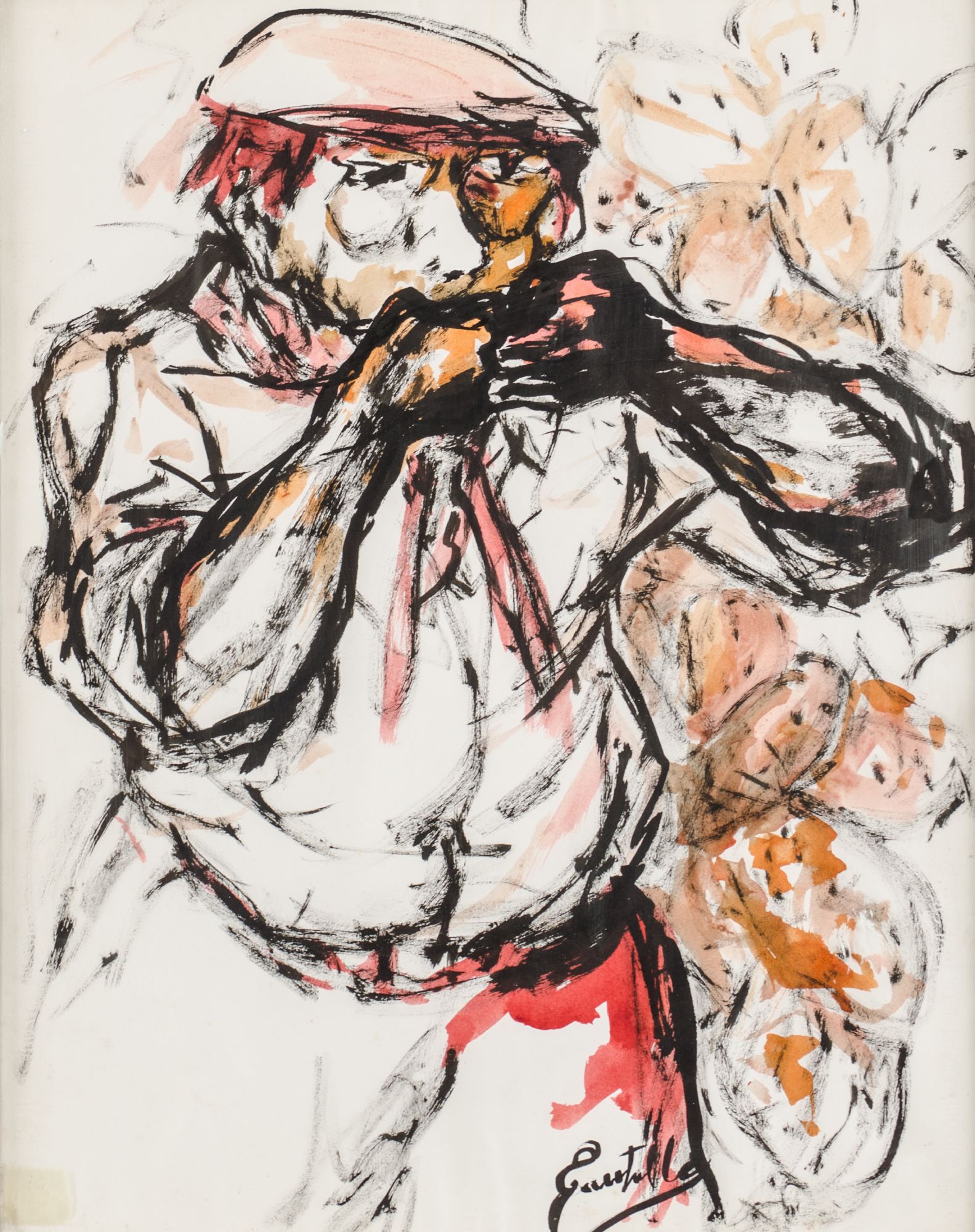 GUASTELLA ACQUARELLO "suonatore di scaccia pensieri". XX secolo Misure: cm 70 x 55