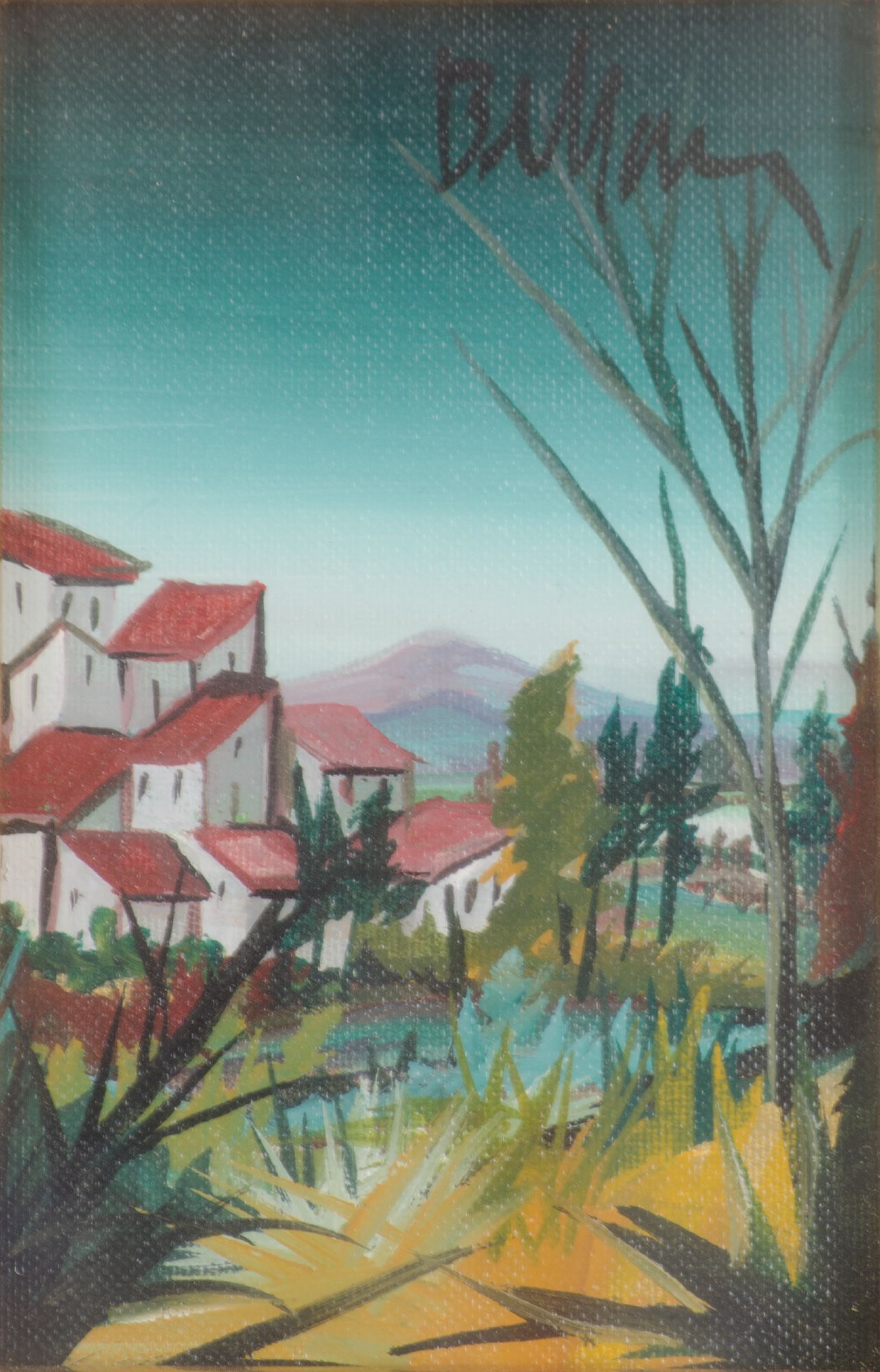 Lotto 463 | BELLANCA OLIO su faesite "caseggiato". XX secolo Misure: cm 15 x 10