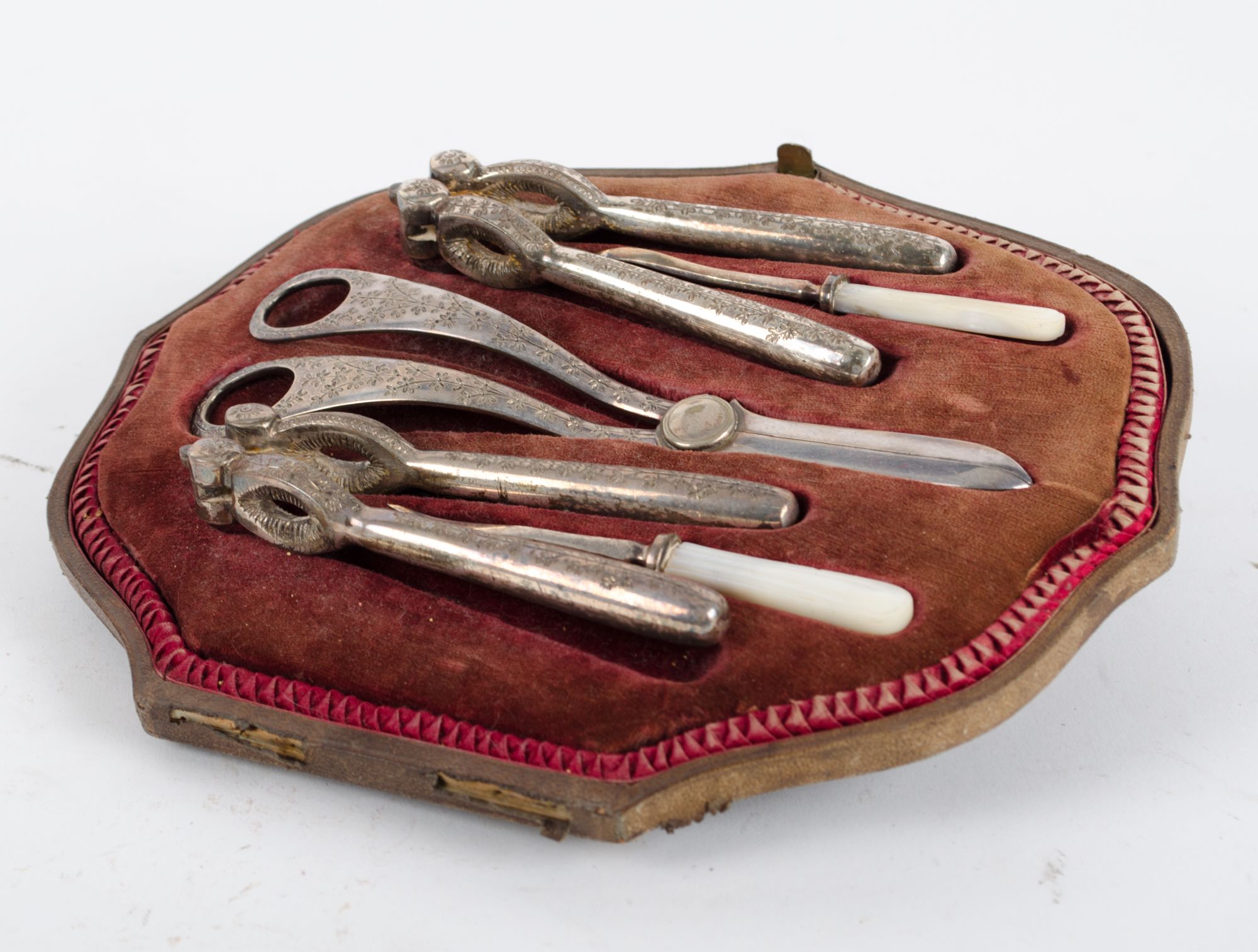 SET posatine per crostacei in Sheffield entro custodia originale. Inghilterra primi '900 Misure: cm 25 x 20