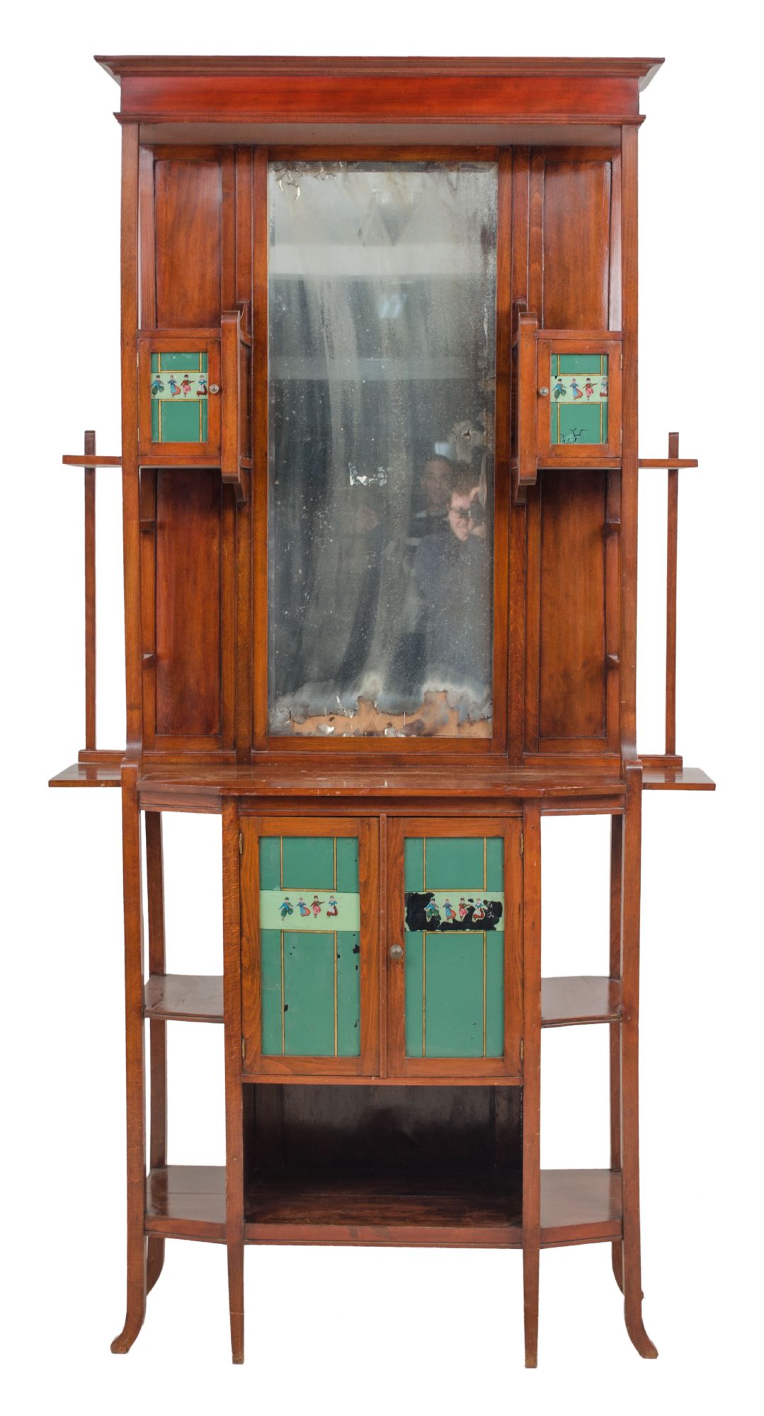 Lotto 485 | ETAGERE Liberty in noce con specchio e vetri dipinti. Sicilia primi '900...