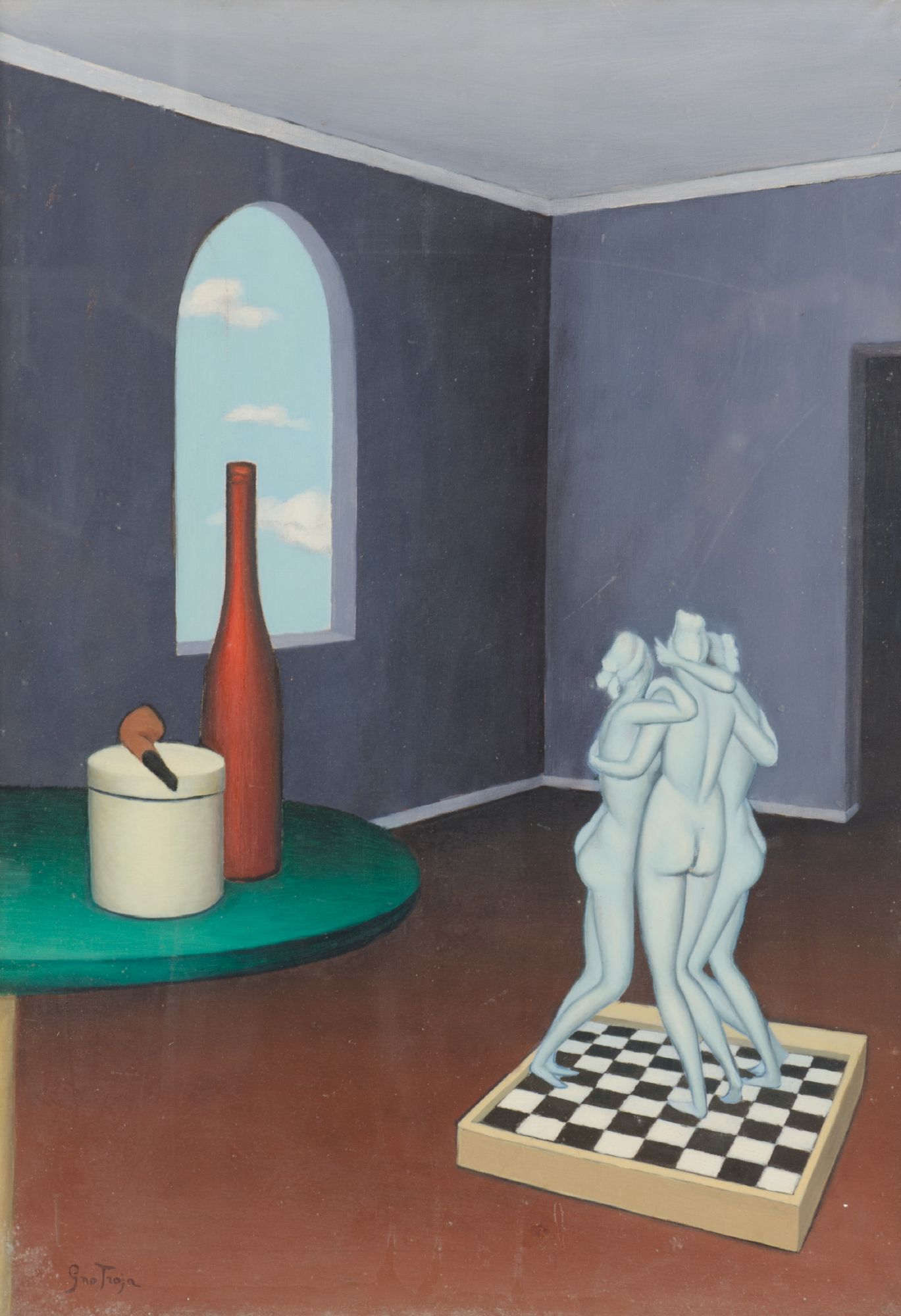 TROJA OLIO su tela "interno con natura morta", firmato in basso a sinistra. XX secolo Misure: cm 85 x 59